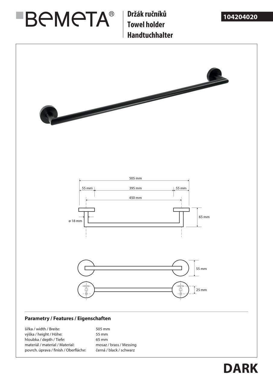 Тримач для рушників Dark (104204020), Bemeta