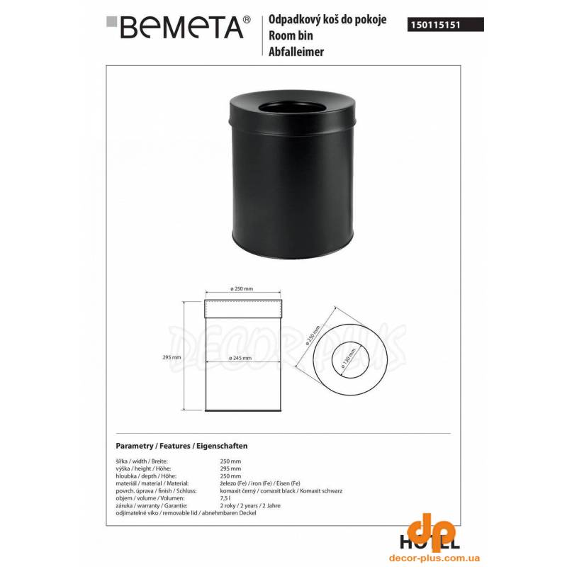 новинка Відро для сміття 7,5 л Hotel (150115151), Bemeta Увеличить