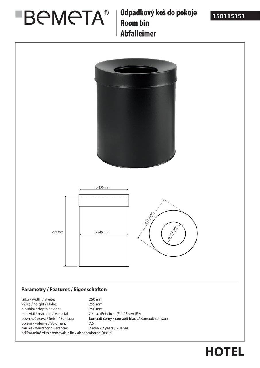 Відро для сміття 7,5 л Hotel (150115151), Bemeta
