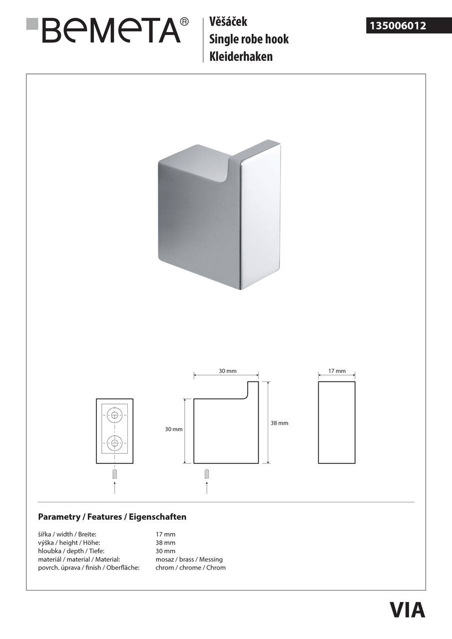 Гачок Via (135006012), Bemeta