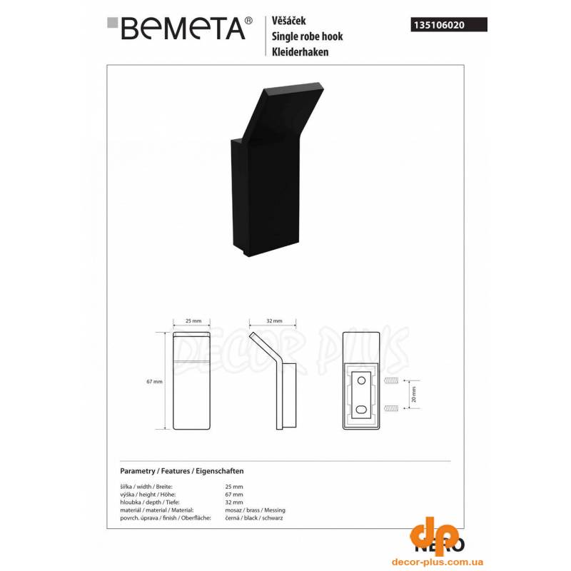 новинка Гачок Nero (135106020), Bemeta Увеличить