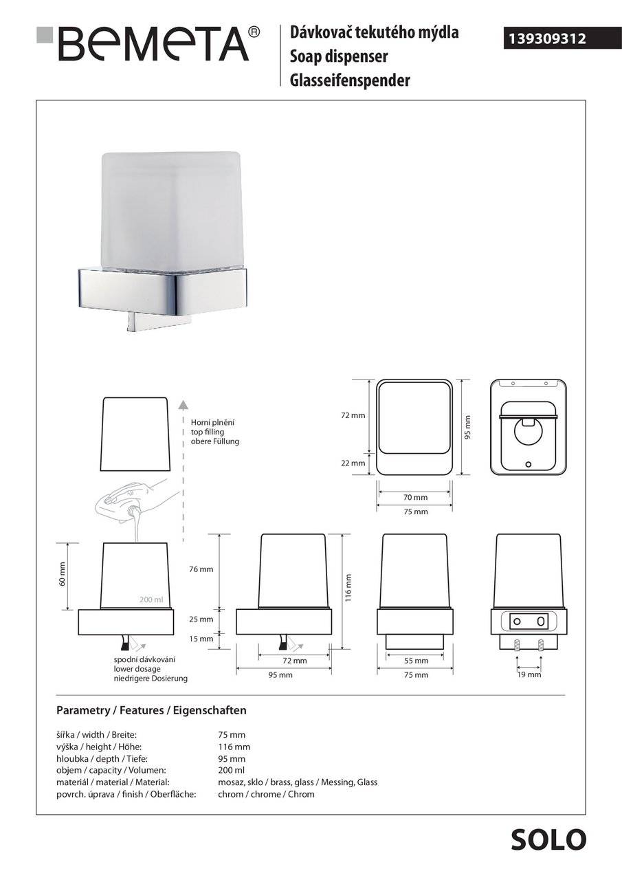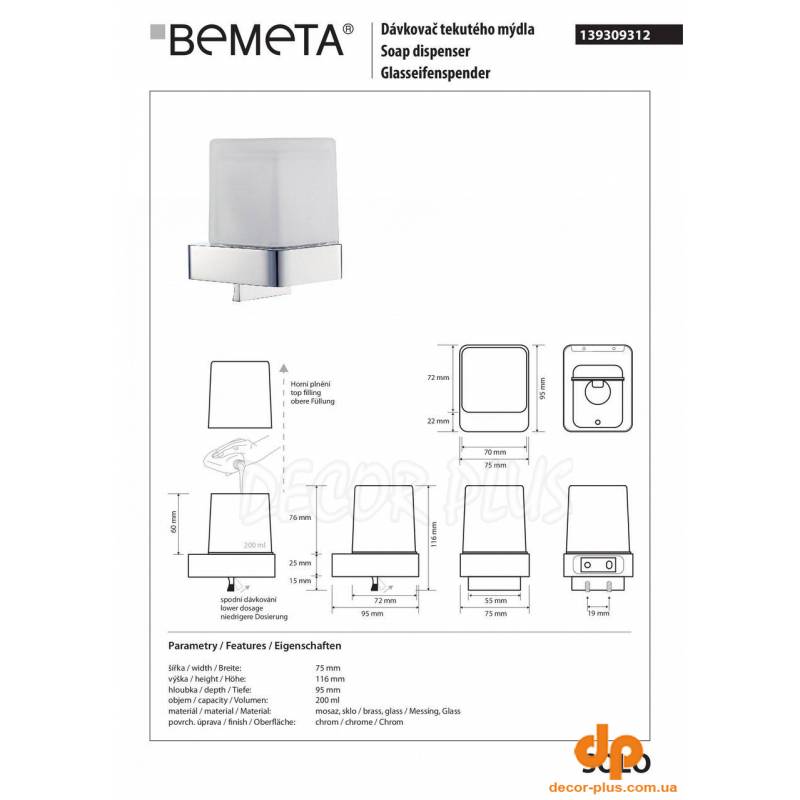 Дозатор для рідкого мила Solo (139309312), Bemeta