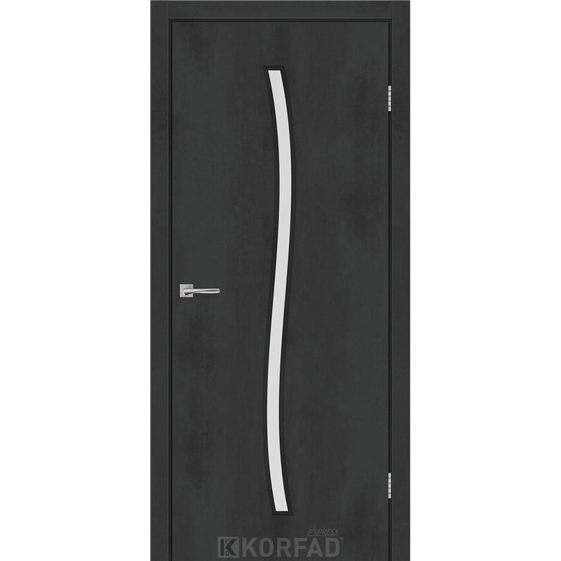 Межкомнатные двери KORFAD EXPRESS GLASS-04 Бетон Графит Черная матовая кромка Стекло Сатин, простые и надежные двери от фабрики Korfad (Украина), изготовленные по европейским стандартам качества.