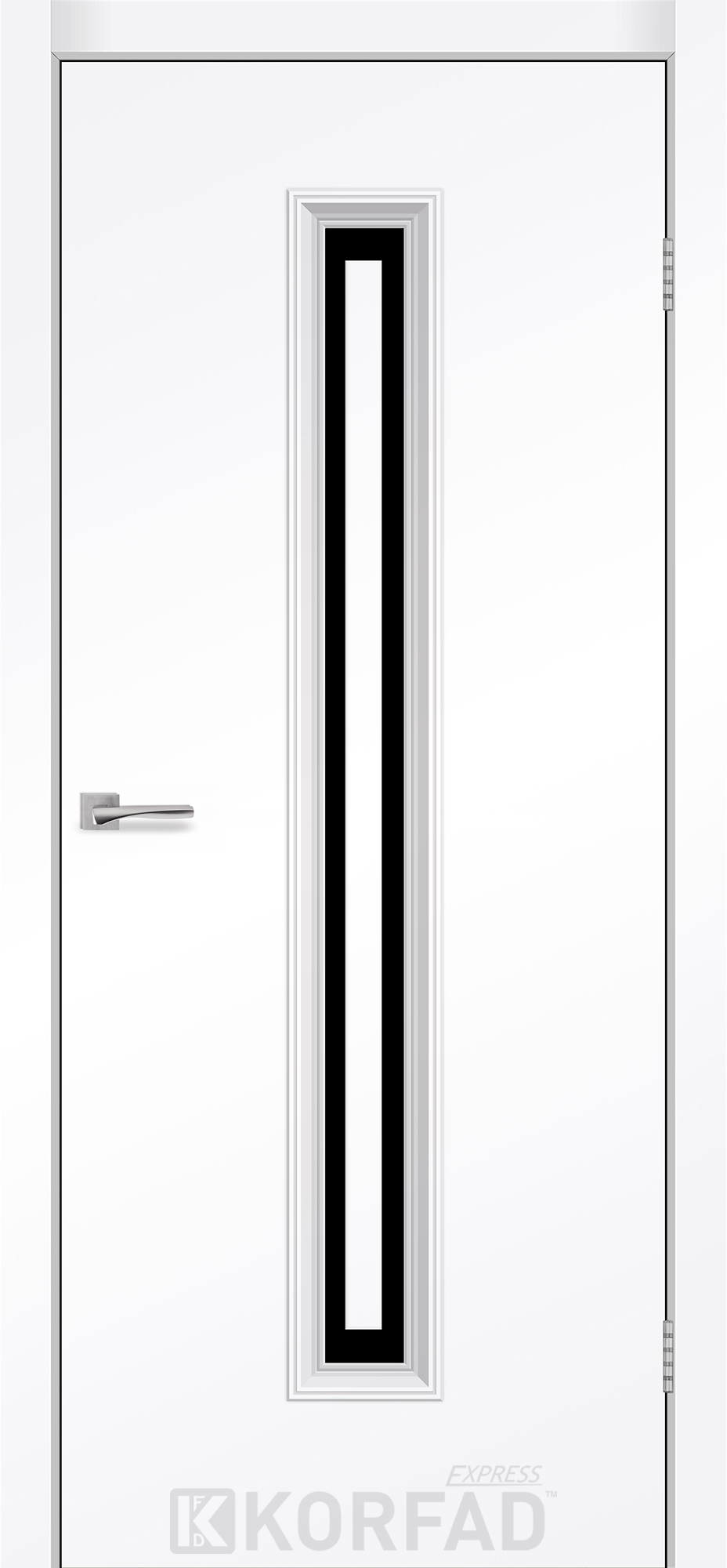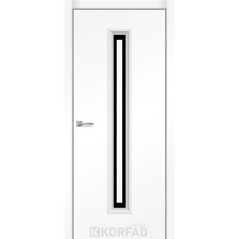 Межкомнатные двери KORFAD EXPRESS GLASS-02 Белый Мат Черное стекло, простые и надежные двери от фабрики Korfad (Украина), изготовленные по европейским стандартам качества.