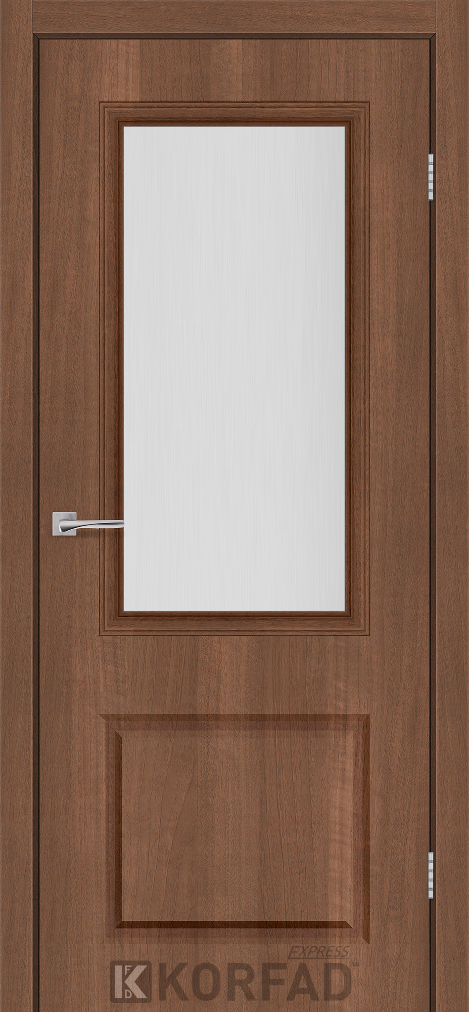 Межкомнатная дверь KORFAD EXPRESS KOLIN Ольха Горная Стекло Сатин, простые и надежные двери от фабрики Korfad (Украина), изготовленные по европейским стандартам качества.