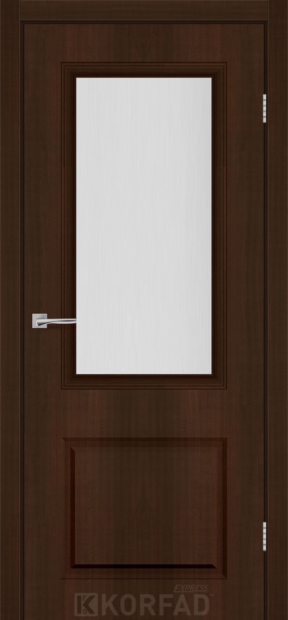 Межкомнатная дверь KORFAD EXPRESS KOLIN Каштан Бурбон Стекло Сатин, простые и надежные двери от фабрики Korfad (Украина), изготовленные по европейским стандартам качества.