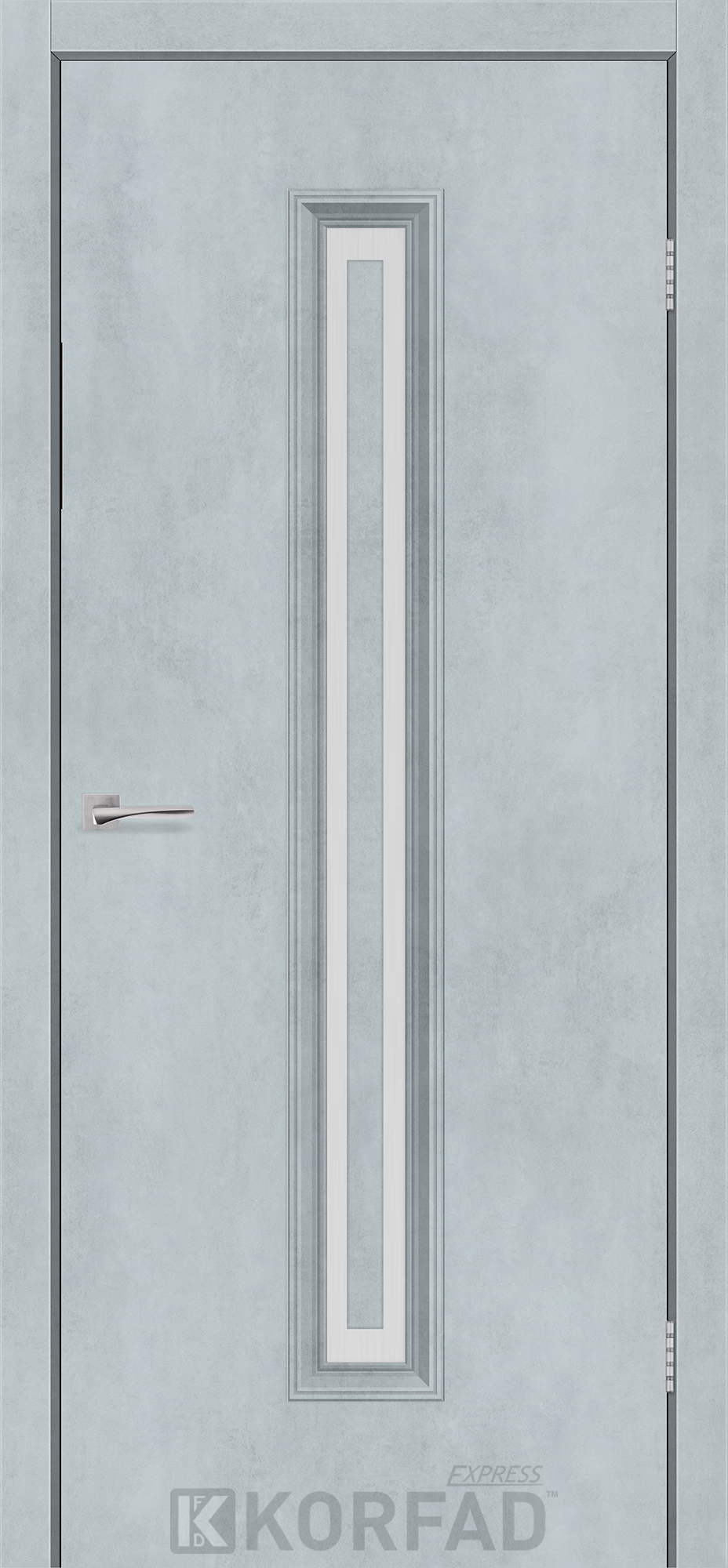 Межкомнатные двери KORFAD EXPRESS GLASS-02 Цемент Светлый Стекло Сатин, простые и надежные двери от фабрики Korfad (Украина), изготовленные по европейским стандартам качества.