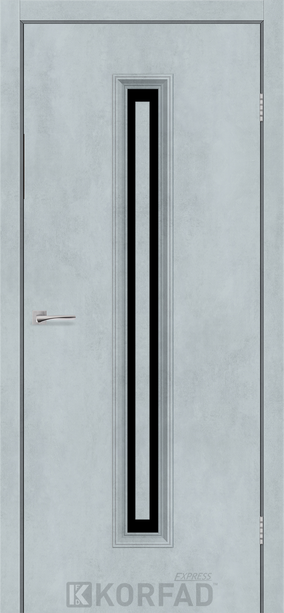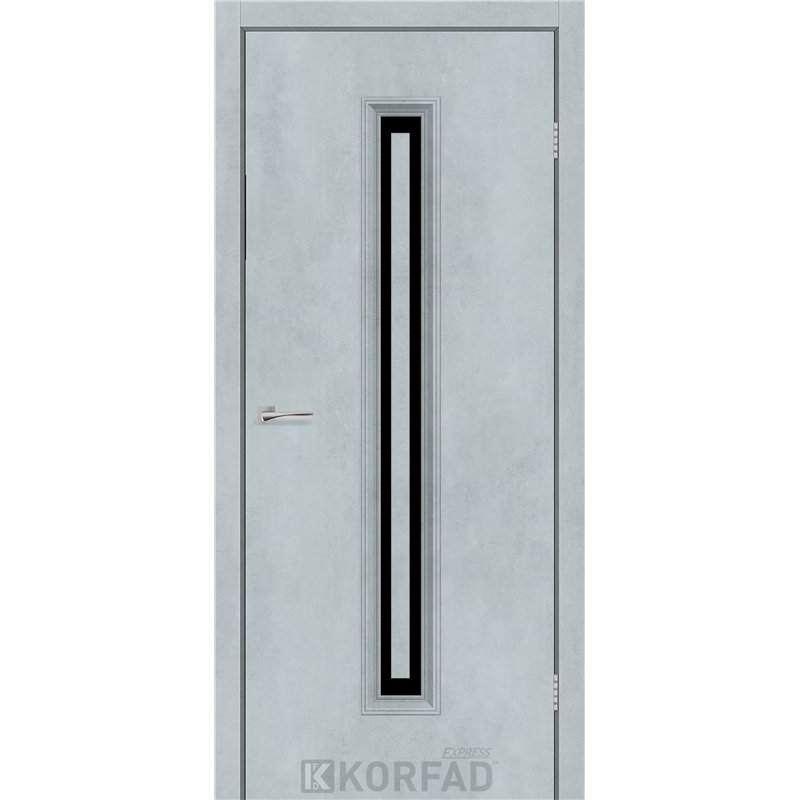 Межкомнатные двери KORFAD EXPRESS GLASS-02 Цемент Светлый Черное стекло, простые и надежные двери от фабрики Korfad (Украина), изготовленные по европейским стандартам качества.