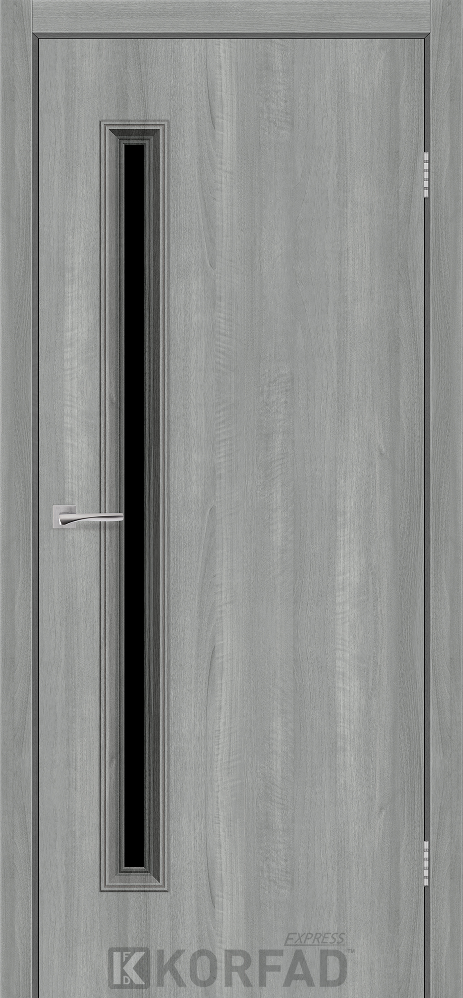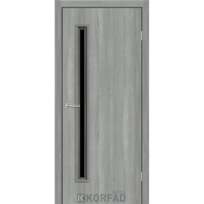 Межкомнатные двери KORFAD EXPRESS GLASS-01 Ясень Стальной Черное стекло, простые и надежные двери от фабрики Korfad (Украина), изготовленные по европейским стандартам качества.