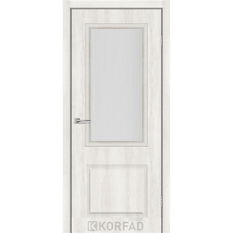 Межкомнатная дверь KORFAD EXPRESS KOLIN Ясень Шелковый Стекло Сатин, простые и надежные двери от фабрики Korfad (Украина), изготовленные по европейским стандартам качества.