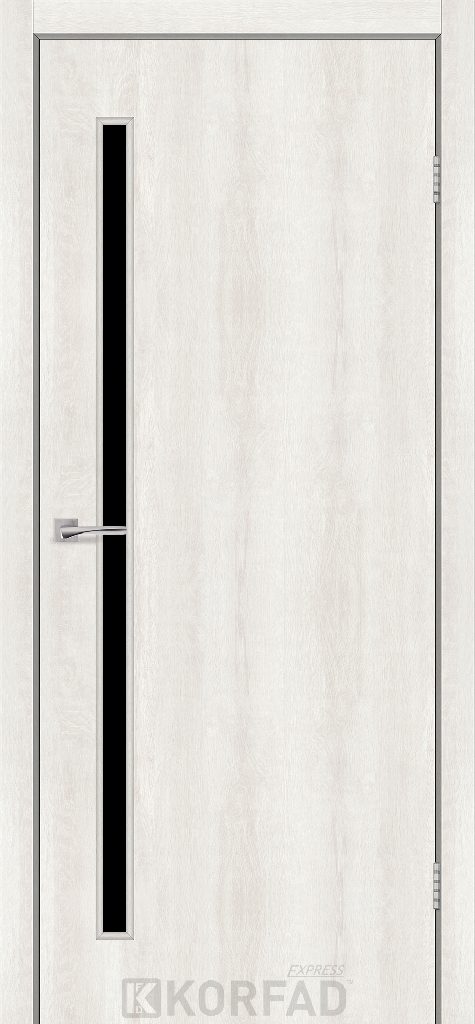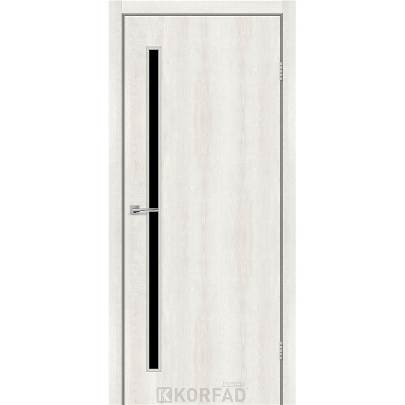Межкомнатные двери KORFAD EXPRESS GLASS-03 Ясень Шелковый Черное стекло, простые и надежные двери от фабрики Korfad (Украина), изготовленные по европейским стандартам качества.
