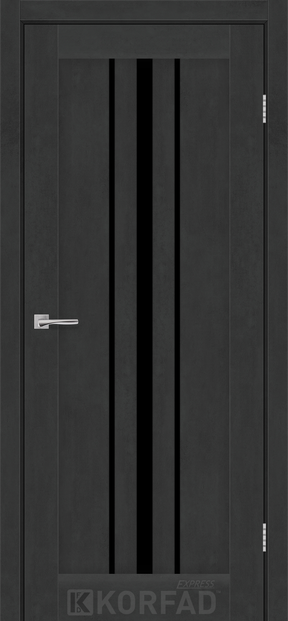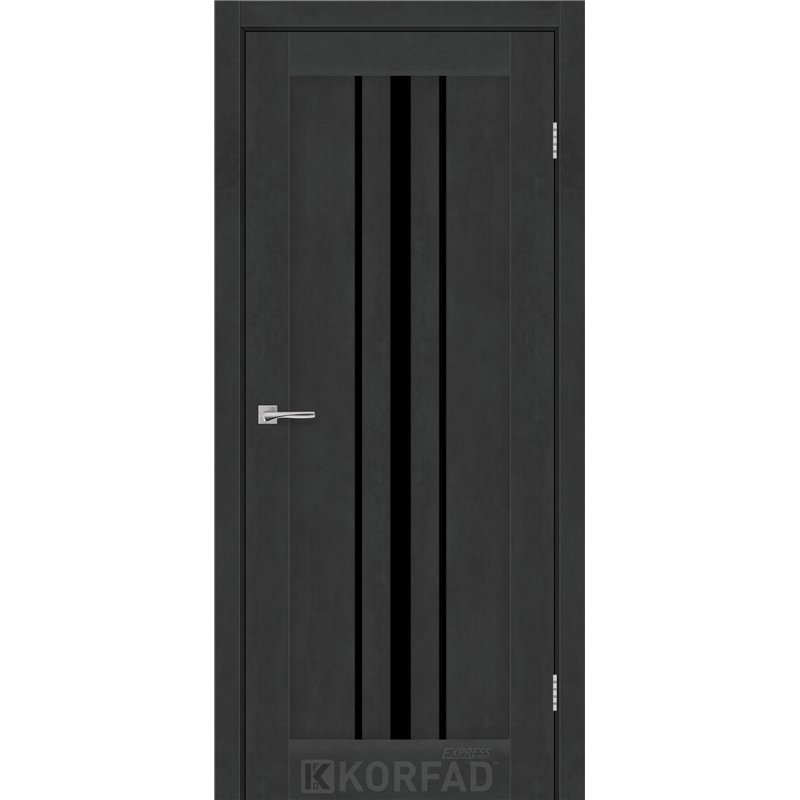 Межкомнатные двери KORFAD EXPRESS ALLEGRO Бетон Графит Черное стекло, современные царговые двери, сочетающие в себе надежность натурального дерева и инновационные покрытия.