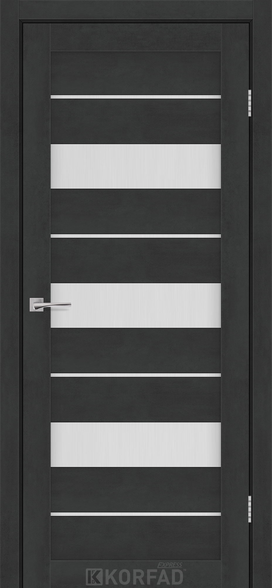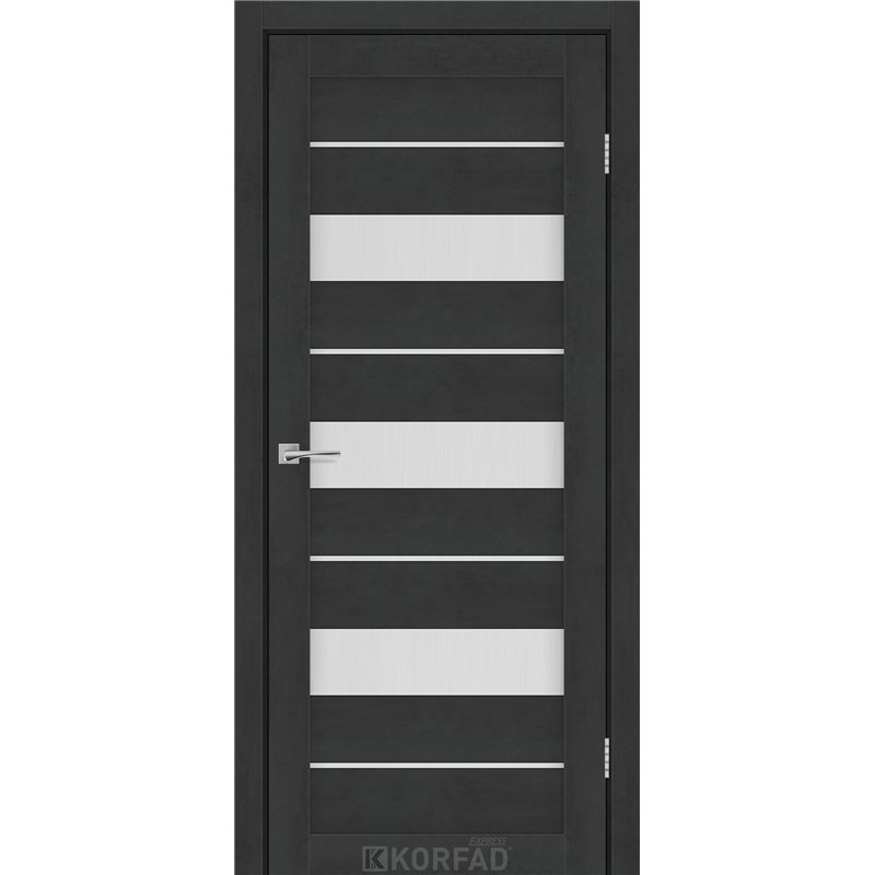 Межкомнатные двери KORFAD EXPRESS CORRIS Бетон Графит Стекло Сатин, современные царговые двери, сочетающие в себе надежность натурального дерева и инновационные покрытия.