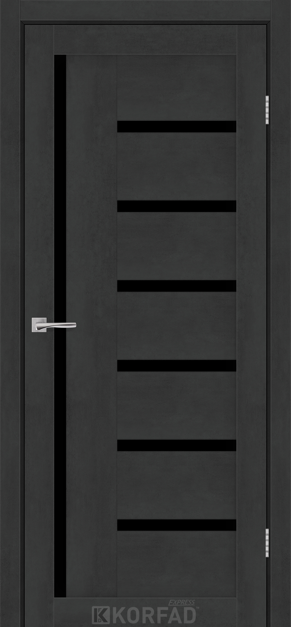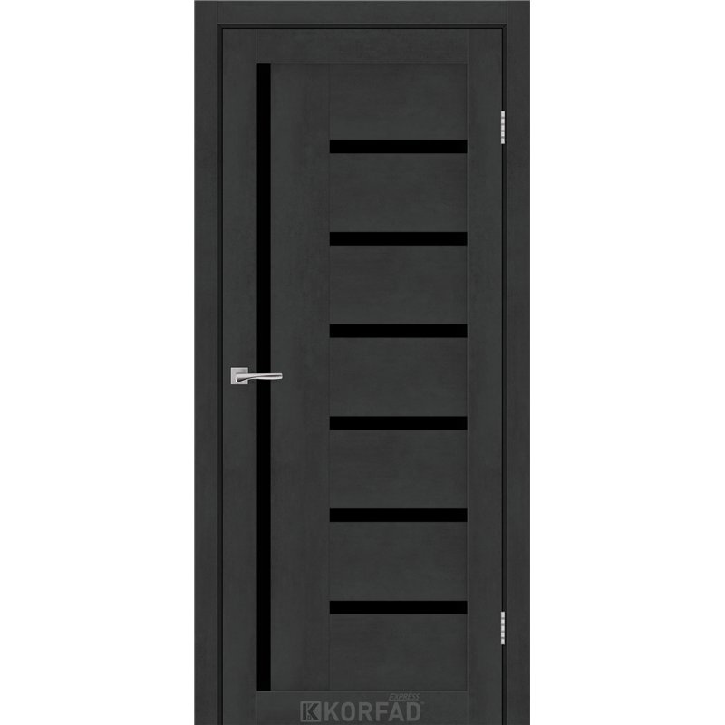 Межкомнатные двери KORFAD EXPRESS HELENA Бетон Графит Черное стекло, современные царговые двери, сочетающие в себе надежность натурального дерева и инновационные покрытия.