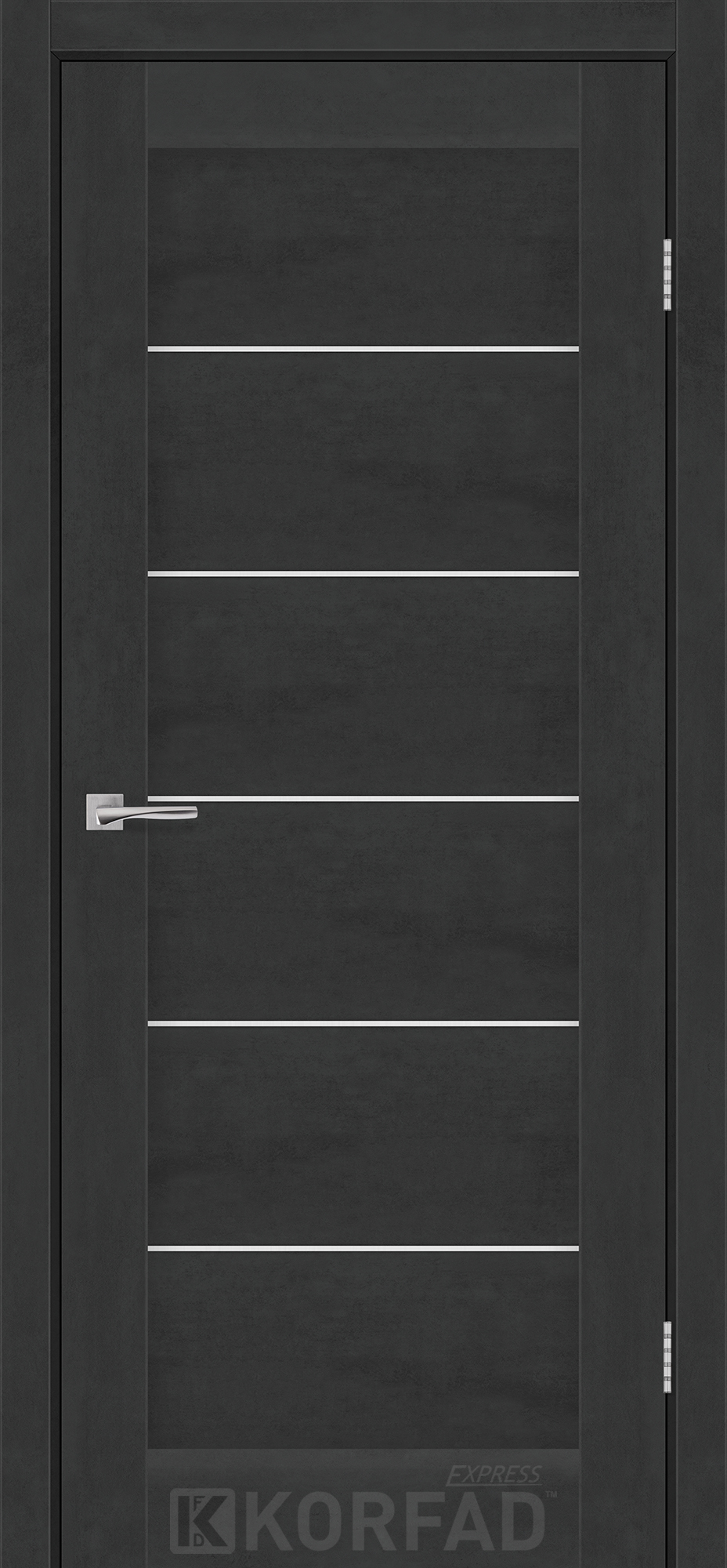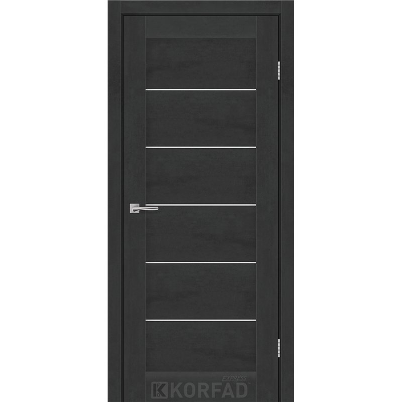 Межкомнатные двери KORFAD EXPRESS RIVIERA Бетон Графит Стекло Сатин, современные царговые двери, сочетающие в себе надежность натурального дерева и инновационные покрытия.