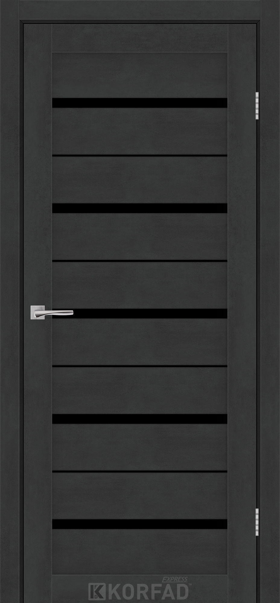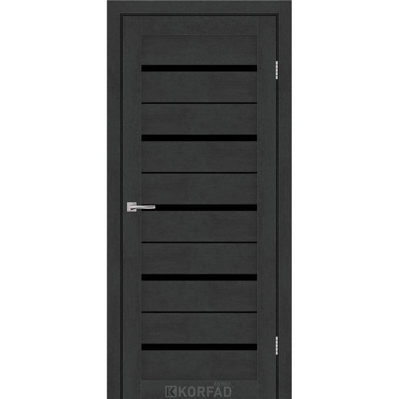 Межкомнатные двери KORFAD EXPRESS ROXTON Бетон Графит Черное стекло, современные царговые двери, сочетающие в себе надежность натурального дерева и инновационные покрытия.