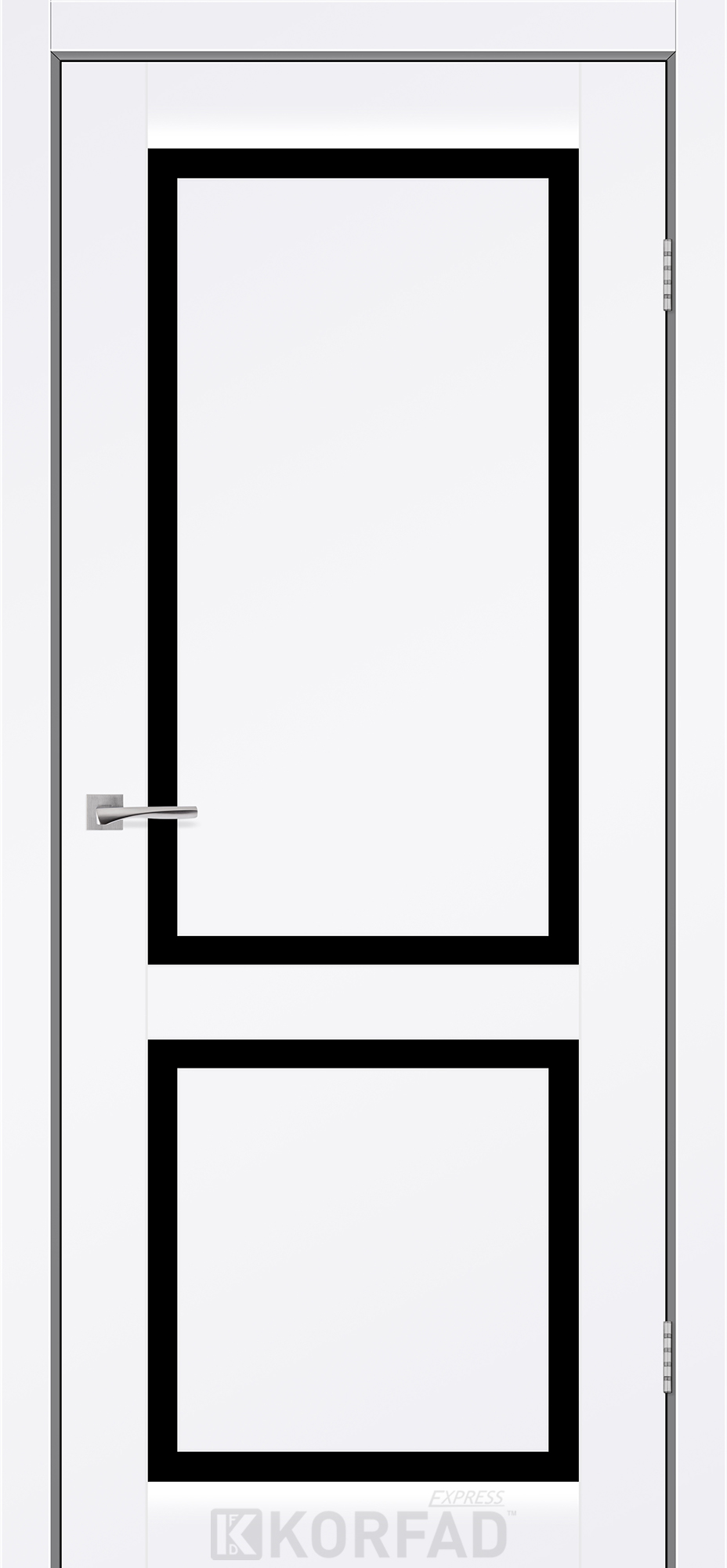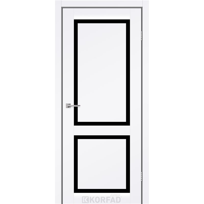 Межкомнатная дверь KORFAD EXPRESS NOBILIS Белый Мат Черное стекло, современные царговые двери, сочетающие в себе надежность натурального дерева и инновационные покрытия.