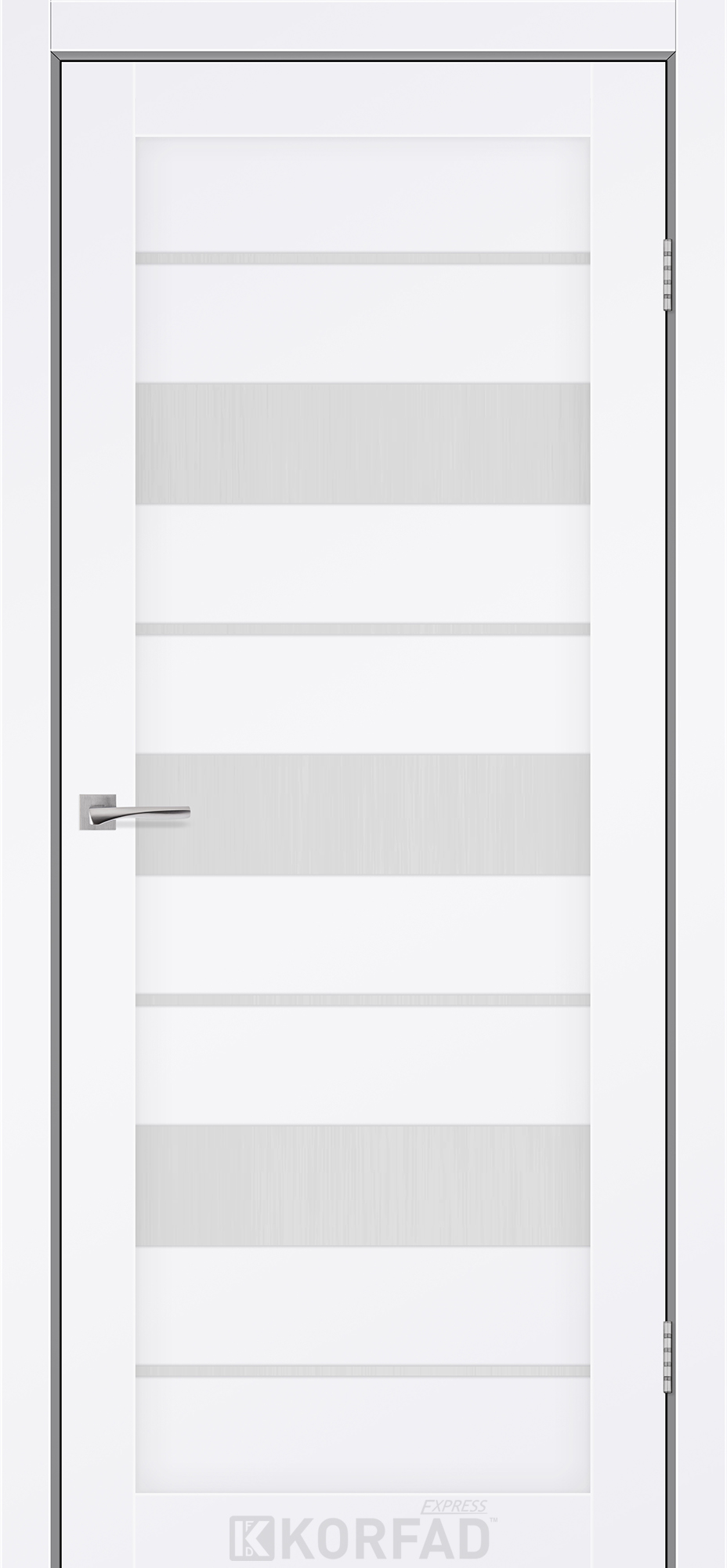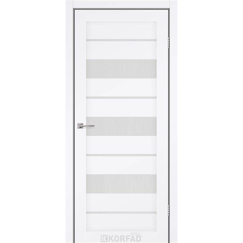 Межкомнатные двери KORFAD EXPRESS CORRIS Белый Мат Стекло Сатин, современные царговые двери, сочетающие в себе надежность натурального дерева и инновационные покрытия.