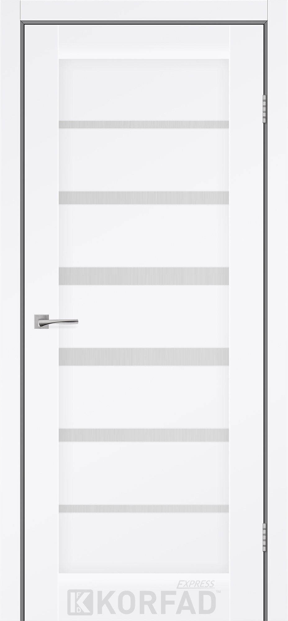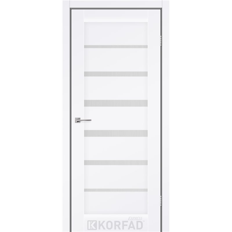 Межкомнатные двери KORFAD EXPRESS PESTO Белый Мат Стекло Сатин, современные царговые двери, сочетающие в себе надежность натурального дерева и инновационные покрытия.