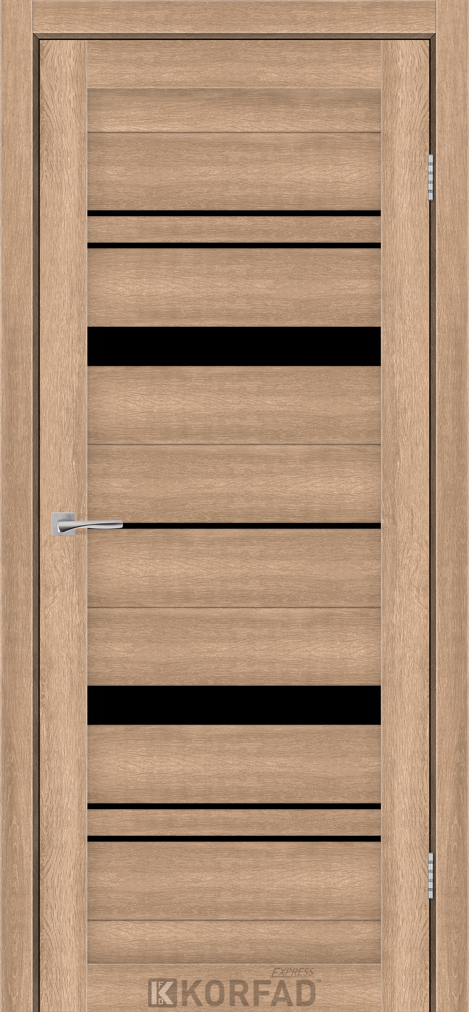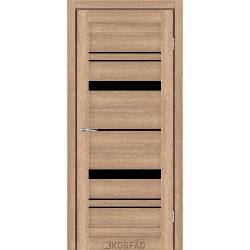 Межкомнатные двери KORFAD EXPRESS BELMINA Кастелло Карамель Черное стекло, современные царговые двери, сочетающие в себе надежность натурального дерева и инновационные покрытия.