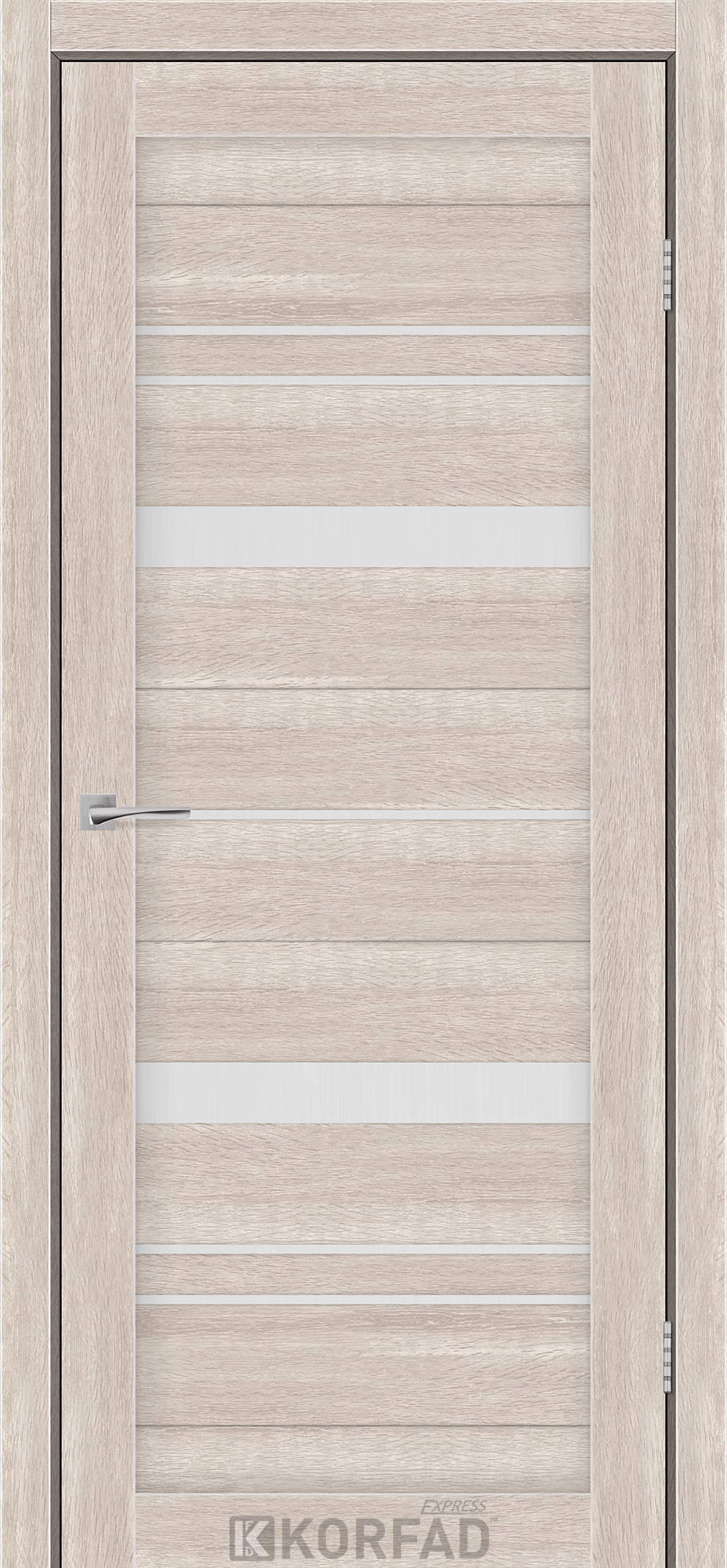 Межкомнатные двери KORFAD EXPRESS BELMINA Кастелло Пастельный Стекло Сатин, современные царговые двери, сочетающие в себе надежность натурального дерева и инновационные покрытия.