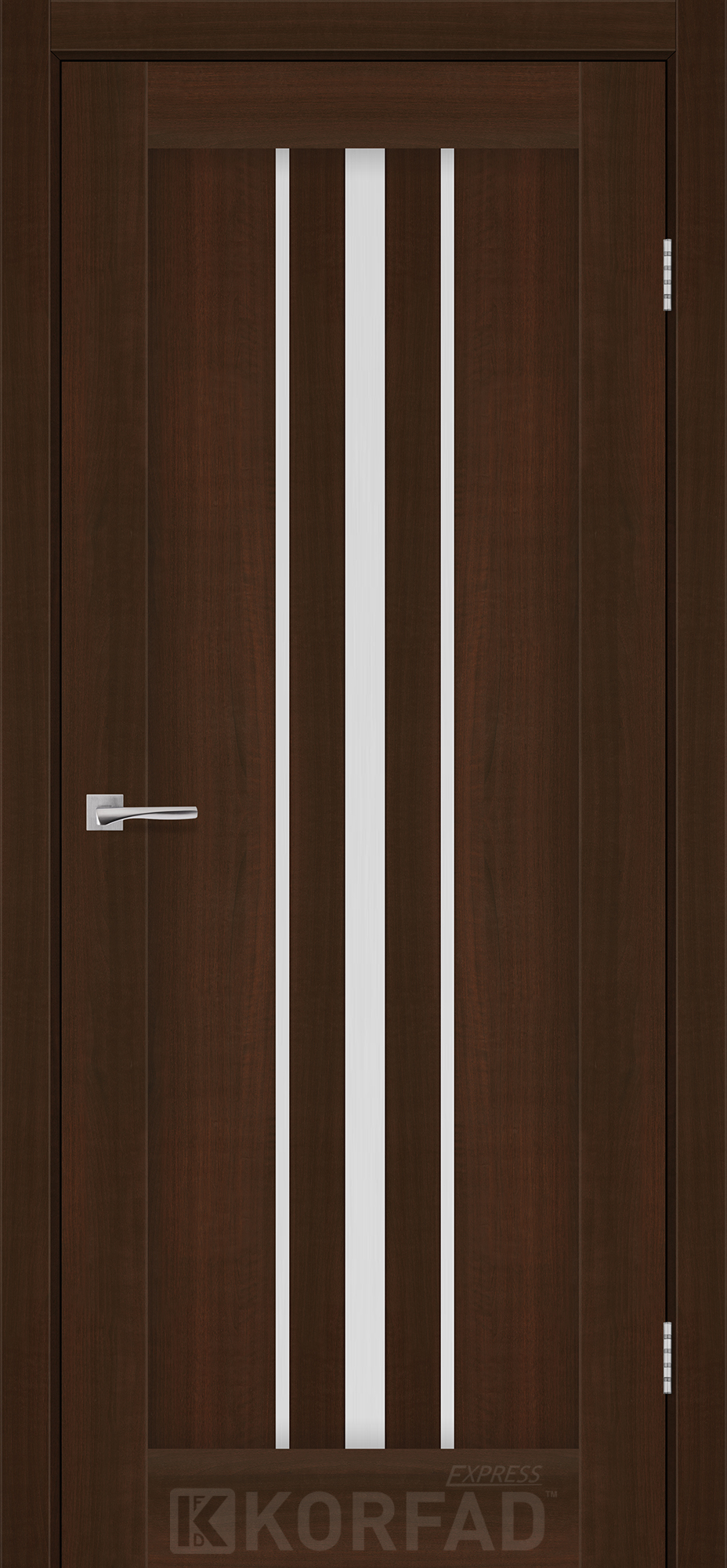 Межкомнатные двери KORFAD EXPRESS ALLEGRO Каштан Бурбон Стекло Сатин, современные царговые двери, сочетающие в себе надежность натурального дерева и инновационные покрытия.