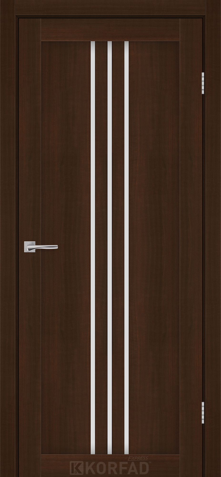Межкомнатные двери KORFAD EXPRESS STILTON Каштан Бурбон Стекло Сатин, современные царговые двери, сочетающие в себе надежность натурального дерева и инновационные покрытия.
