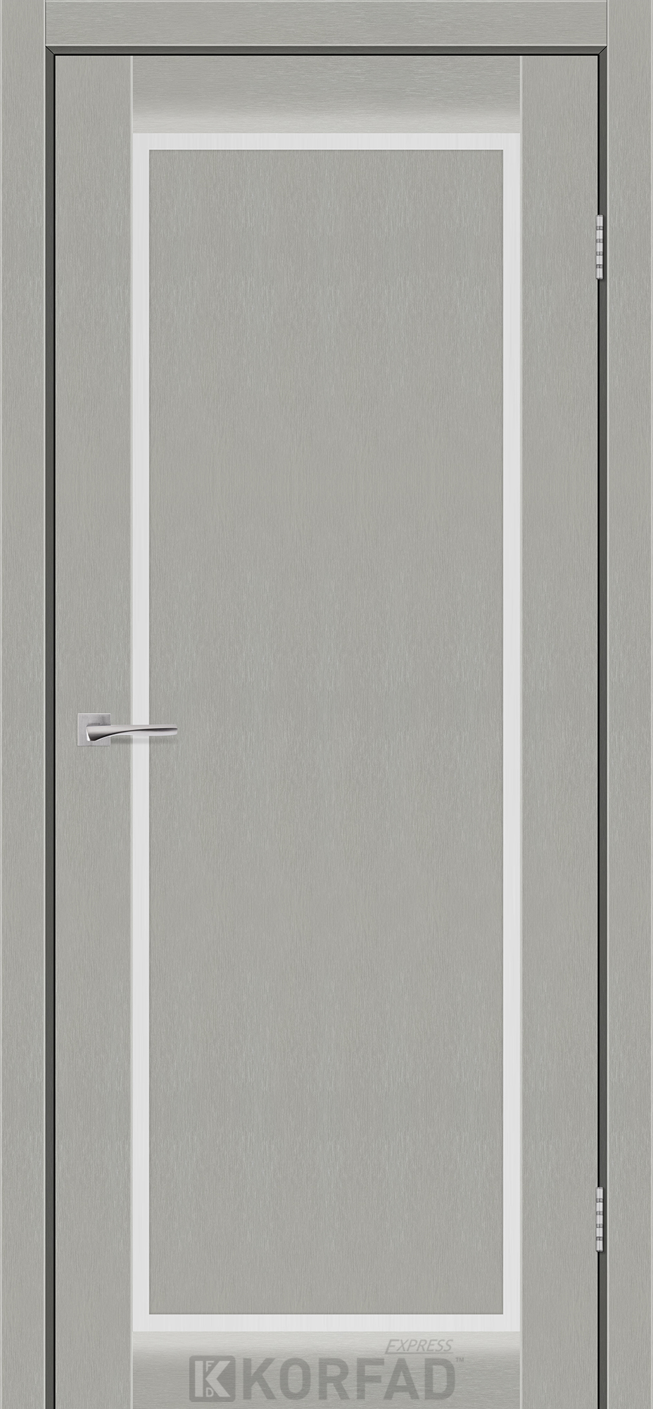 Межкомнатные двери KORFAD EXPRESS LEGACY Сатин Жемчужный Стекло Сатин, современные царговые двери, сочетающие в себе надежность натурального дерева и инновационные покрытия.