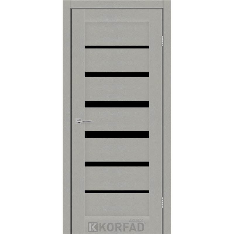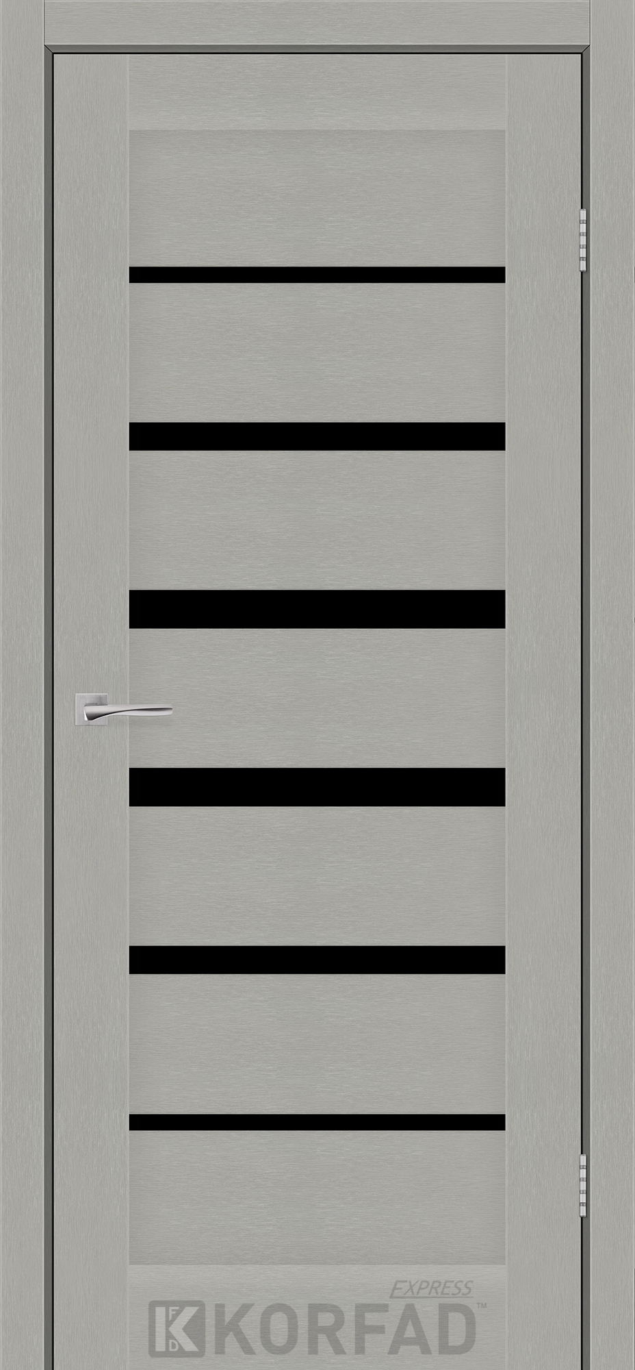 Межкомнатные двери KORFAD EXPRESS PESTO Сатин Жемчужный Черное стекло, современные царговые двери, сочетающие в себе надежность натурального дерева и инновационные покрытия.