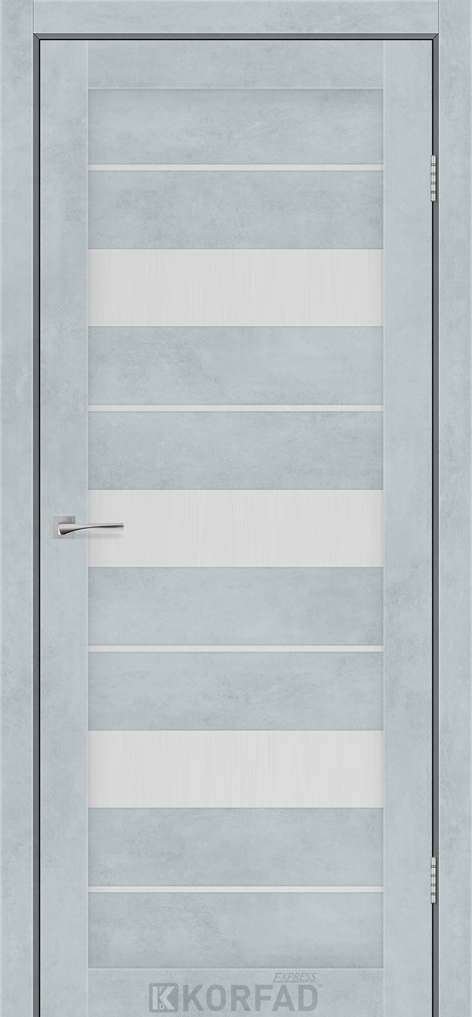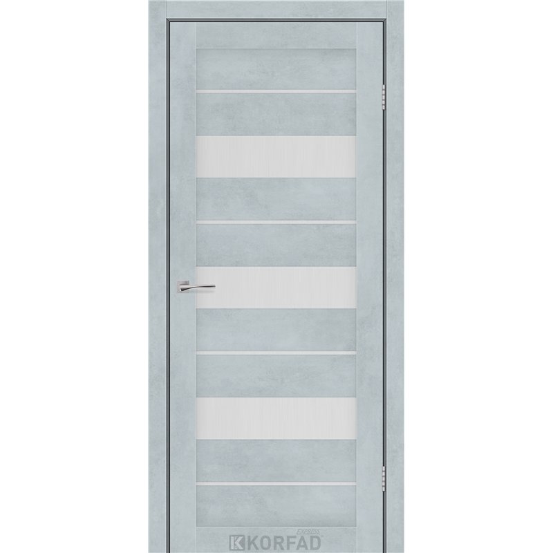Межкомнатные двери KORFAD EXPRESS CORRIS Цемент Светлый Стекло Сатин, современные царговые двери, сочетающие в себе надежность натурального дерева и инновационные покрытия.