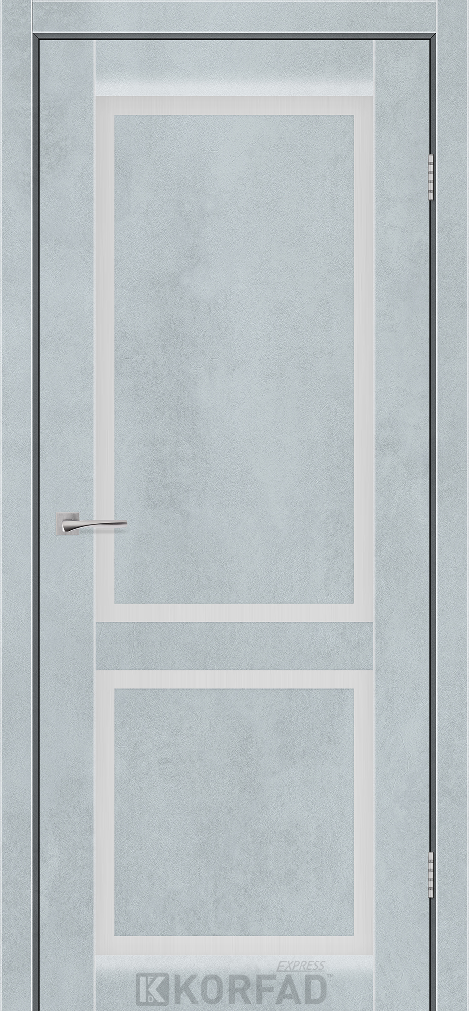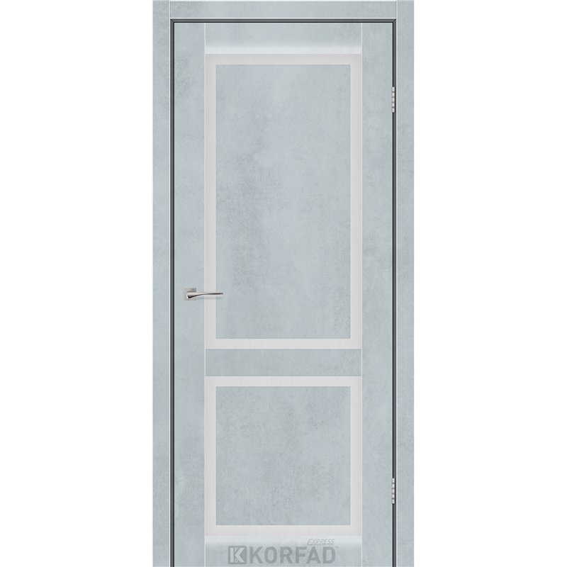 Межкомнатные двери KORFAD EXPRESS NOBILIS Цемент Светлый Стекло Сатин, современные царговые двери, сочетающие в себе надежность натурального дерева и инновационные покрытия.