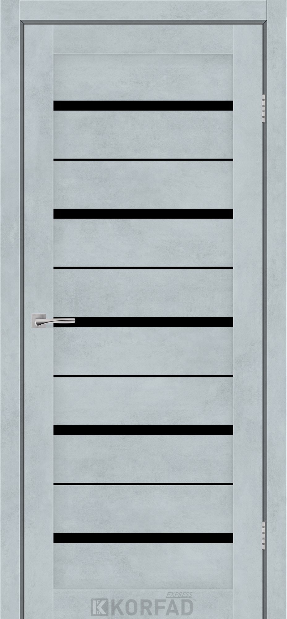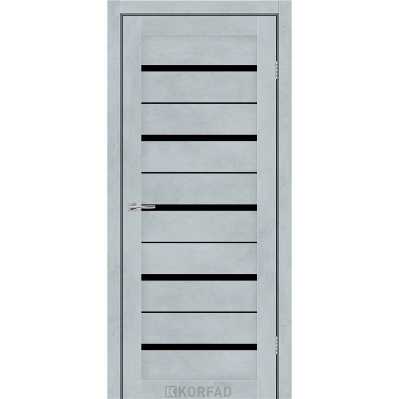 Межкомнатные двери KORFAD EXPRESS ROXTON Цемент Светлый Черное стекло, современные царговые двери, сочетающие в себе надежность натурального дерева и инновационные покрытия.