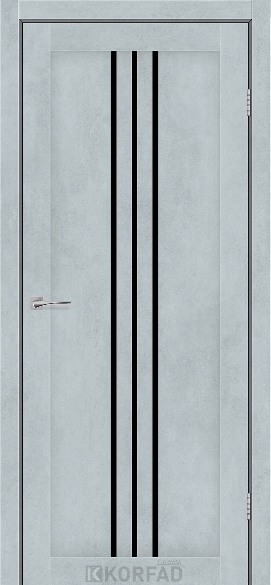 Межкомнатные двери KORFAD EXPRESS STILTON Цемент Светлый Черное стекло, современные царговые двери, сочетающие в себе надежность натурального дерева и инновационные покрытия.