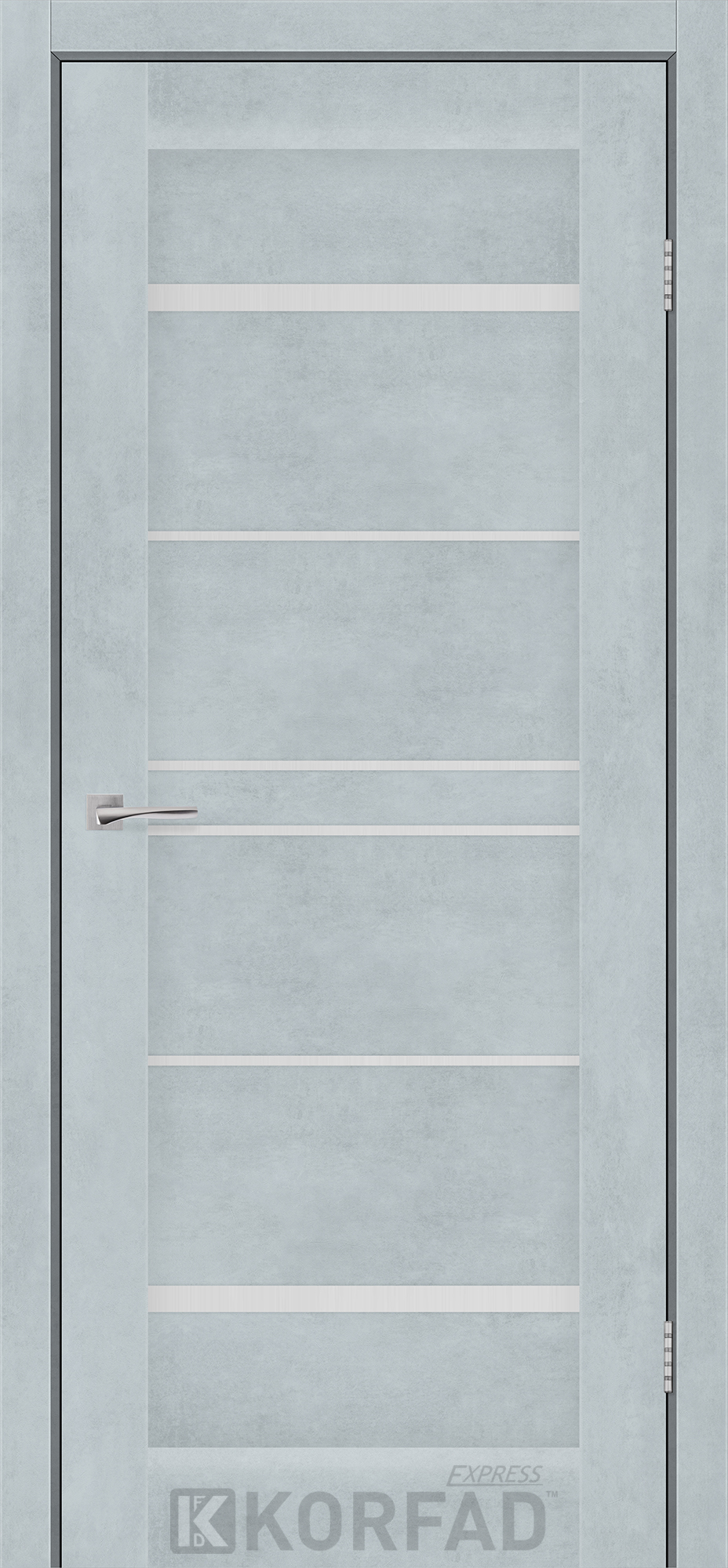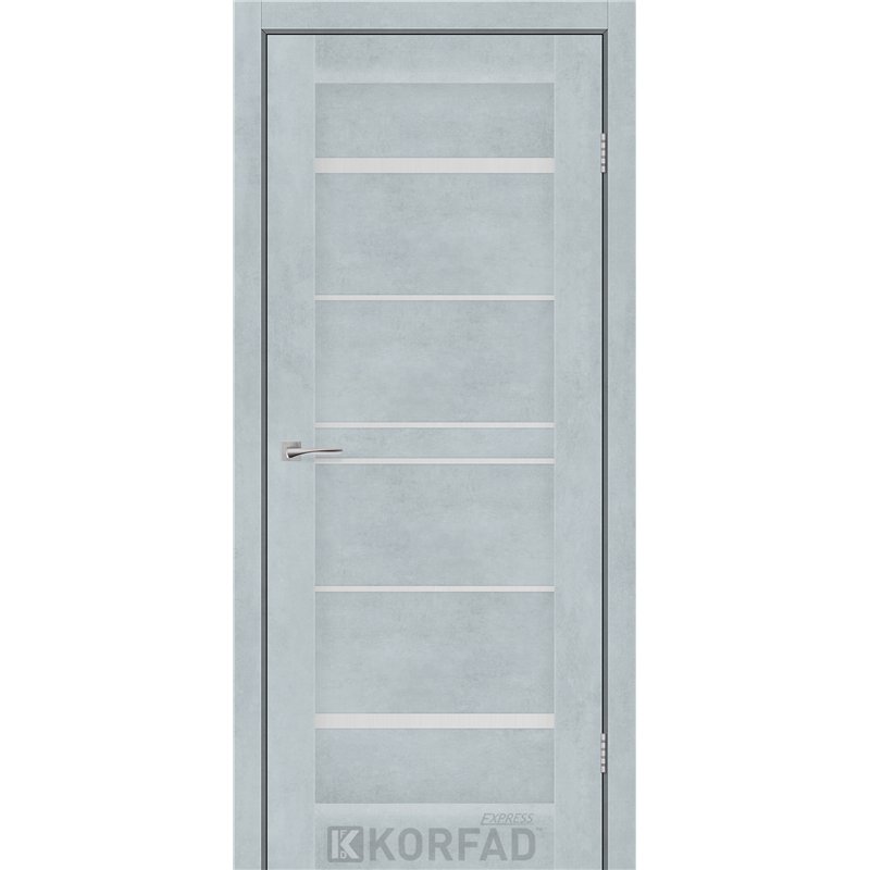 Межкомнатные двери KORFAD EXPRESS VISTA Цемент Светлый Стекло Сатин, современные царговые двери, сочетающие в себе надежность натурального дерева и инновационные покрытия.