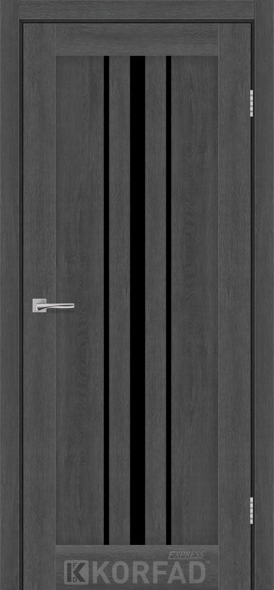 Межкомнатные двери KORFAD EXPRESS ALLEGRO Ясен Гранит Черное стекло, современные царговые двери, сочетающие в себе надежность натурального дерева и инновационные покрытия.