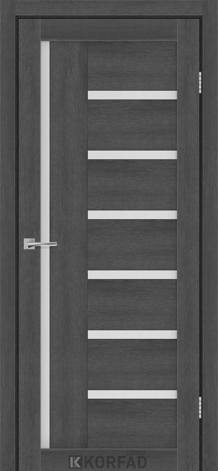 Межкомнатные двери KORFAD EXPRESS HELENA Ясень Гранит Стекло Сатин, современные царговые двери, сочетающие в себе надежность натурального дерева и инновационные покрытия.