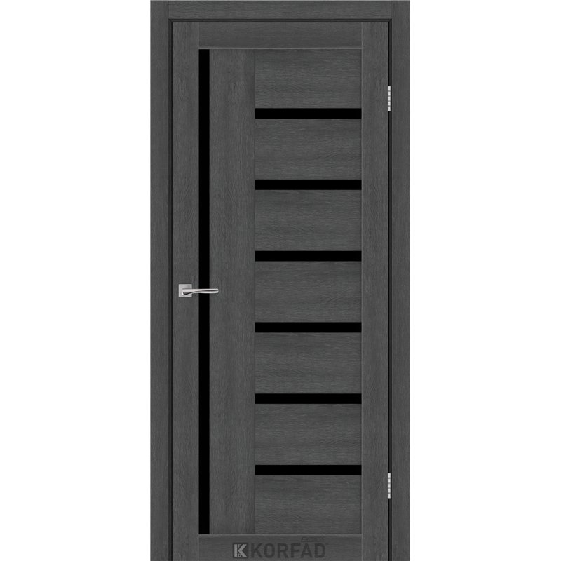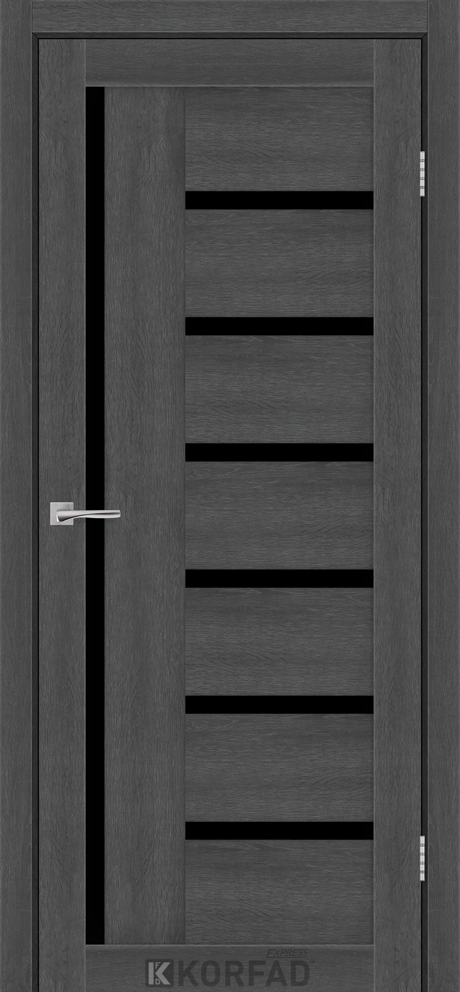 Межкомнатные двери KORFAD EXPRESS HELENA Ясень Гранит Черное стекло, современные царговые двери, сочетающие в себе надежность натурального дерева и инновационные покрытия.