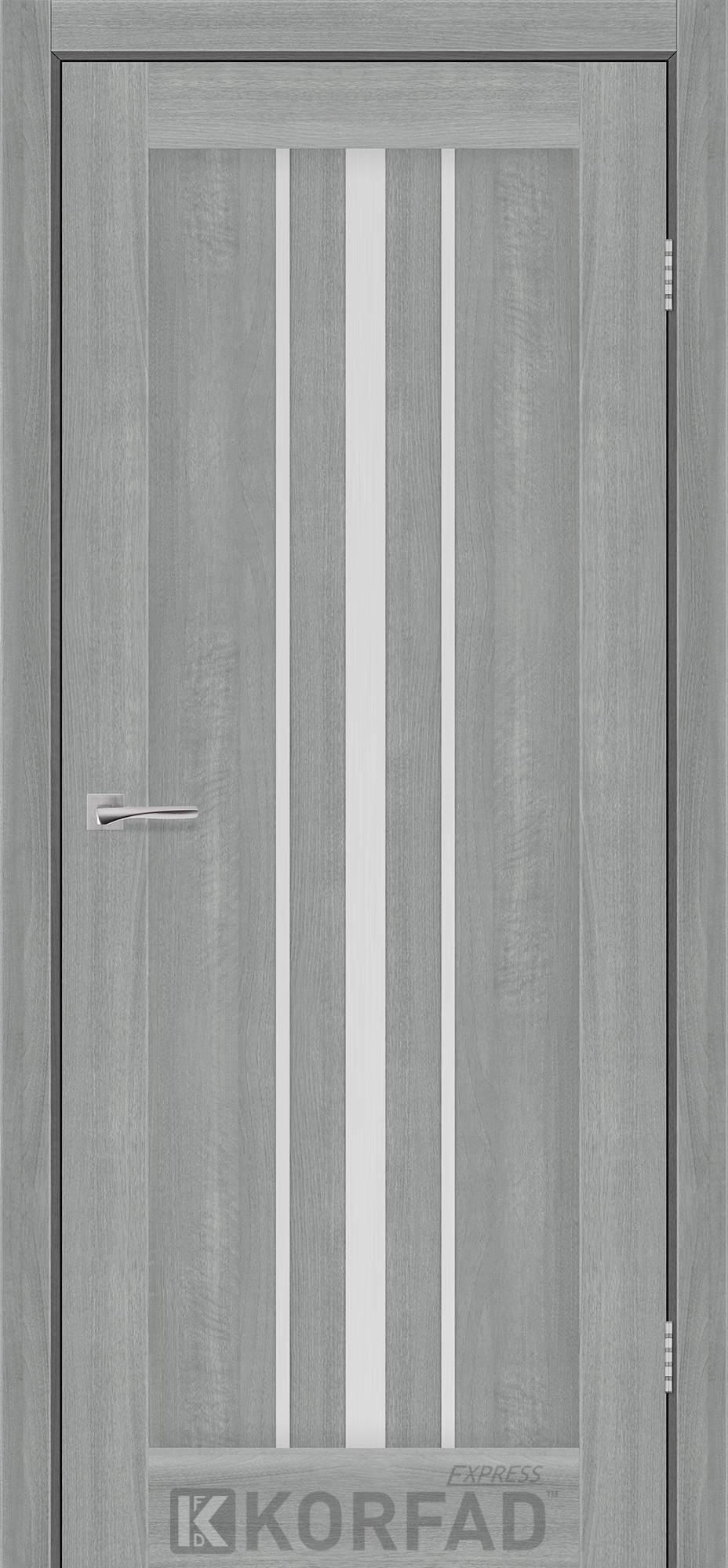 Межкомнатные двери KORFAD EXPRESS ALLEGRO Ясень Стальной Стекло Сатин, современные царговые двери, сочетающие в себе надежность натурального дерева и инновационные покрытия.