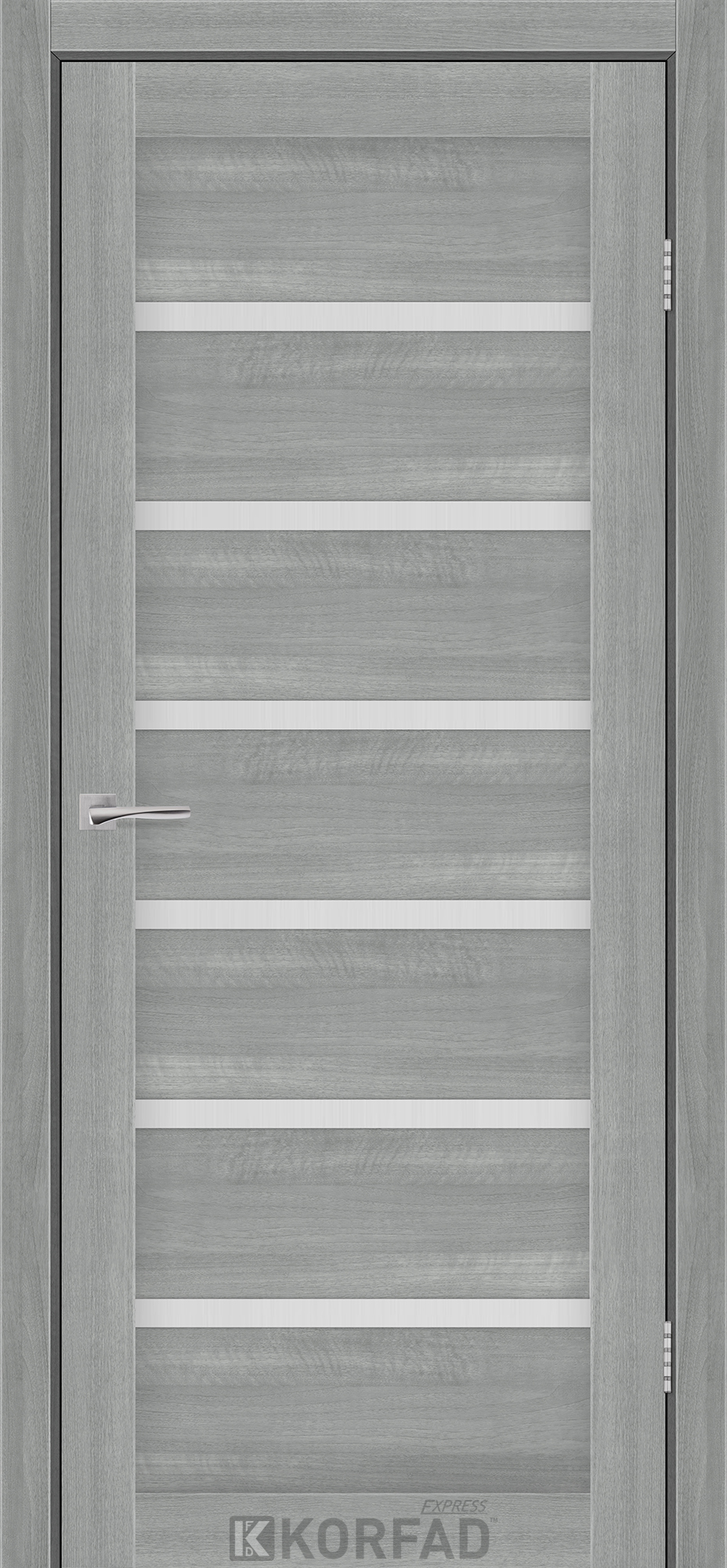 Межкомнатные двери KORFAD EXPRESS DELMONT Ясень Стальной Стекло Сатин, современные царговые двери, сочетающие в себе надежность натурального дерева и инновационные покрытия.