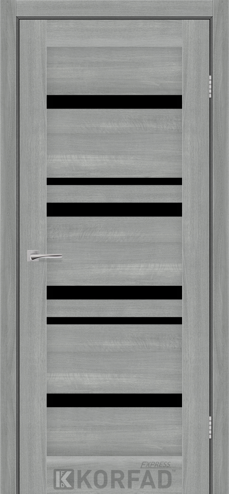 Межкомнатные двери KORFAD EXPRESS MARTINA Ясень Стальной Черное стекло, современные царговые двери, сочетающие в себе надежность натурального дерева и инновационные покрытия.