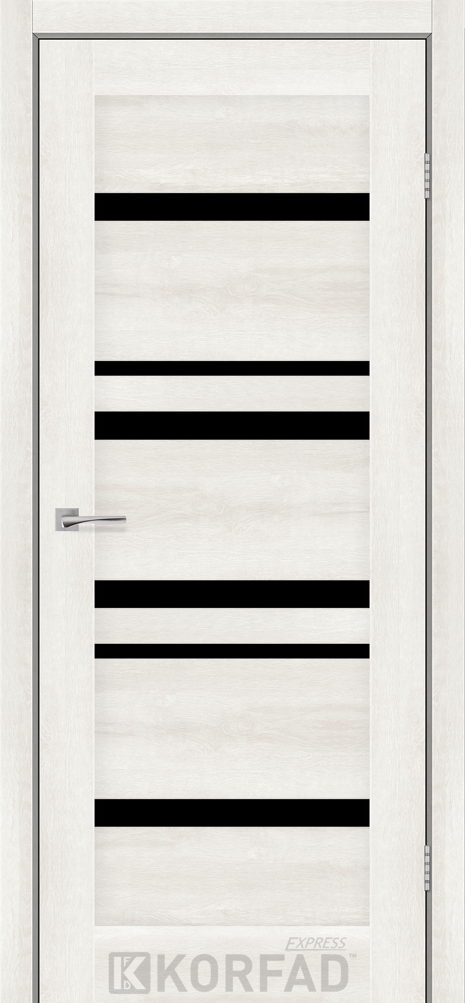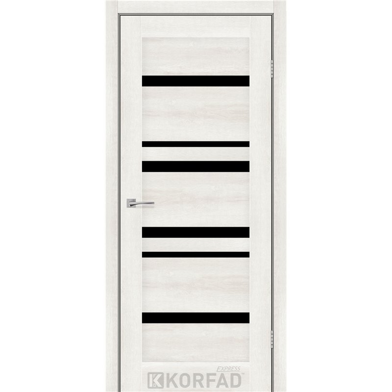 Межкомнатные двери KORFAD EXPRESS MARTINA Ясень Шелковый Черное стекло, современные царговые двери, сочетающие в себе надежность натурального дерева и инновационные покрытия.