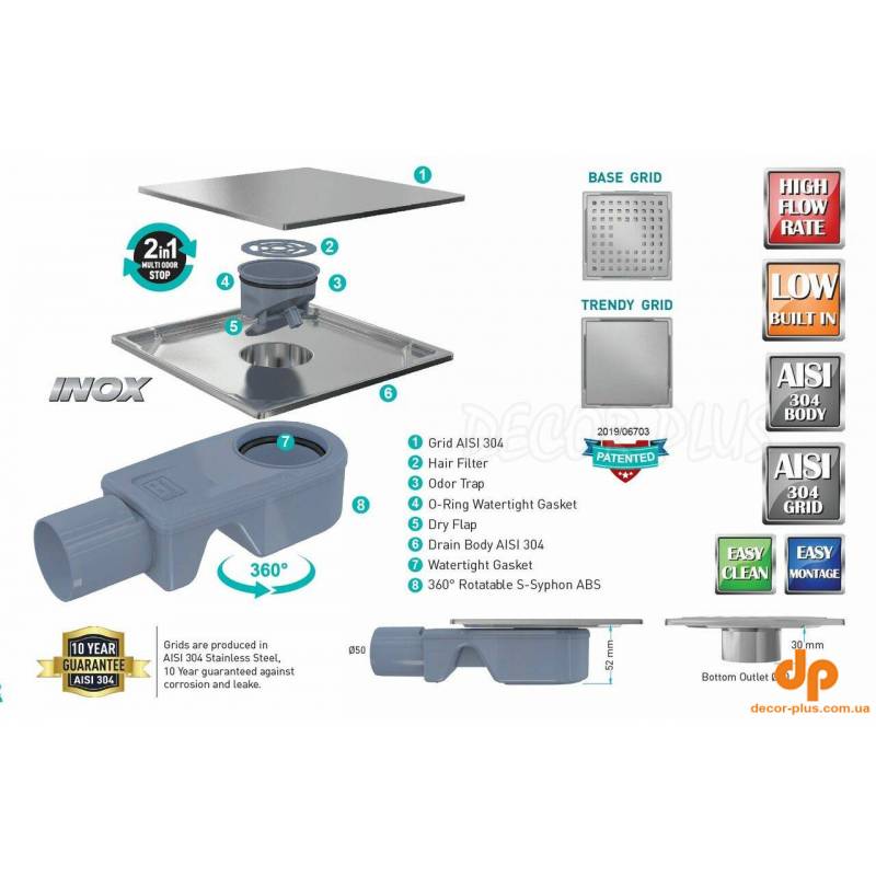 Душовий трап Inox-S Base VFD-773515 Valtemo