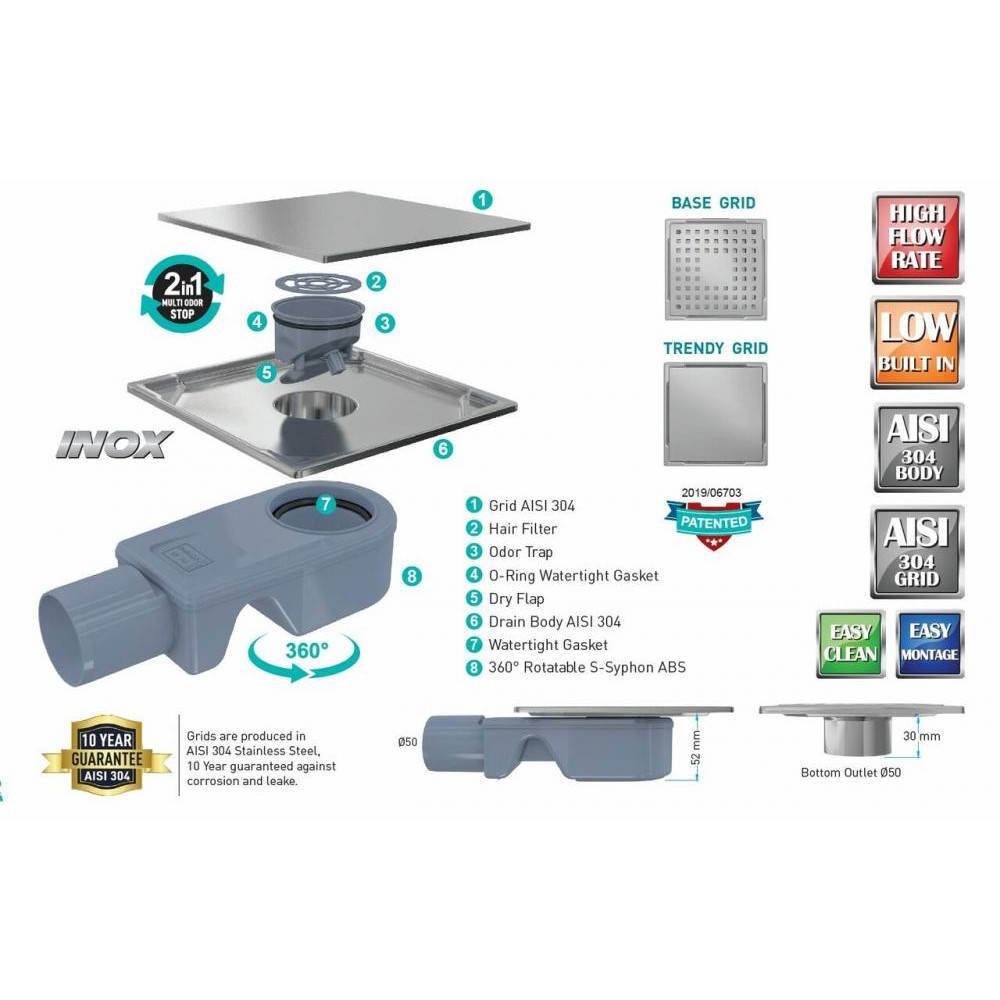 Душовий трап Inox-S Base VFD-773315 Valtemo