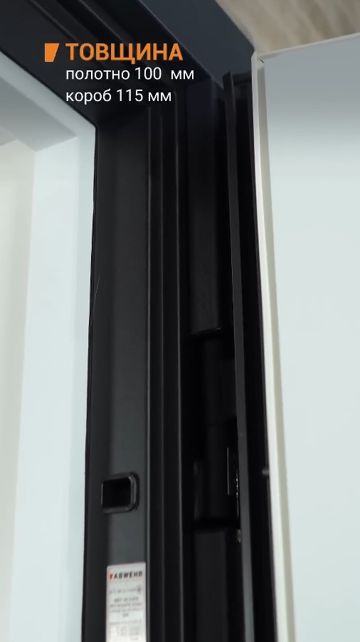 Усиленная система петель: Три мощные петли с подшипниками берут на себя основной вес массивного полотна (100 мм). Это гарантирует легкий и бесшумный ход двери — открыть её сможет даже ребенок, несмотря на внушительные габариты.