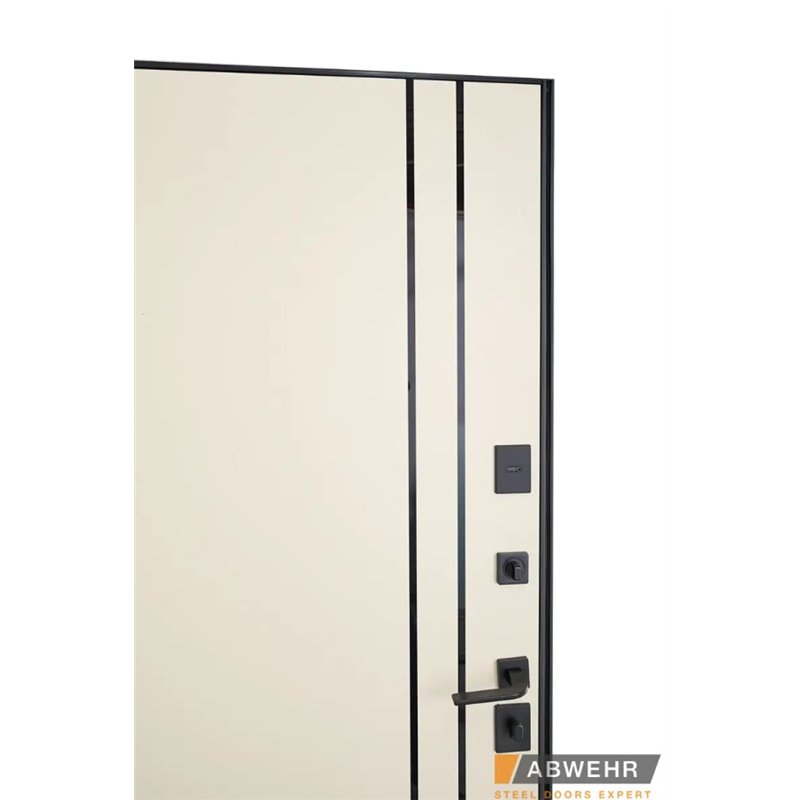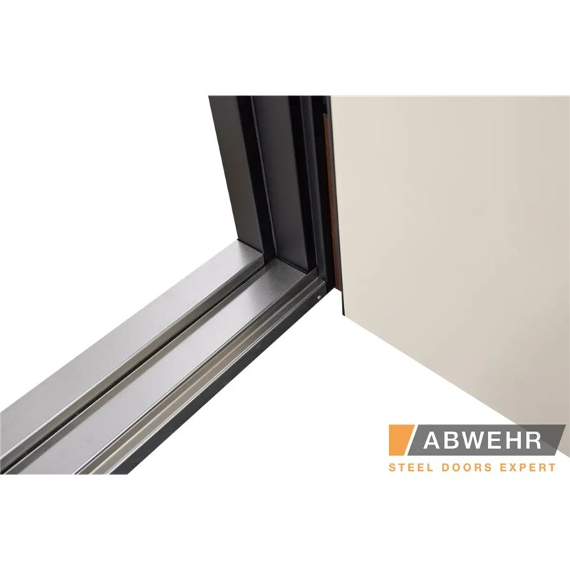 Дополнительный терморазрыв на основе пробкового дерева или пенополистирола предотвращает промерзание зимой и образование конденсата в теплое время года, делая двери Abwehr отличным решением для уличной установки.