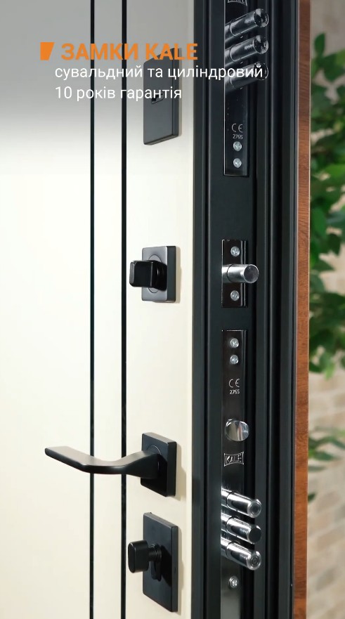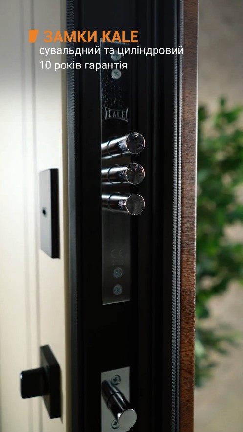 Надежная защита: дверь оснащена двумя турецкими замками KALE (сувальдным и цилиндровым) с защитными металлическими карманами.