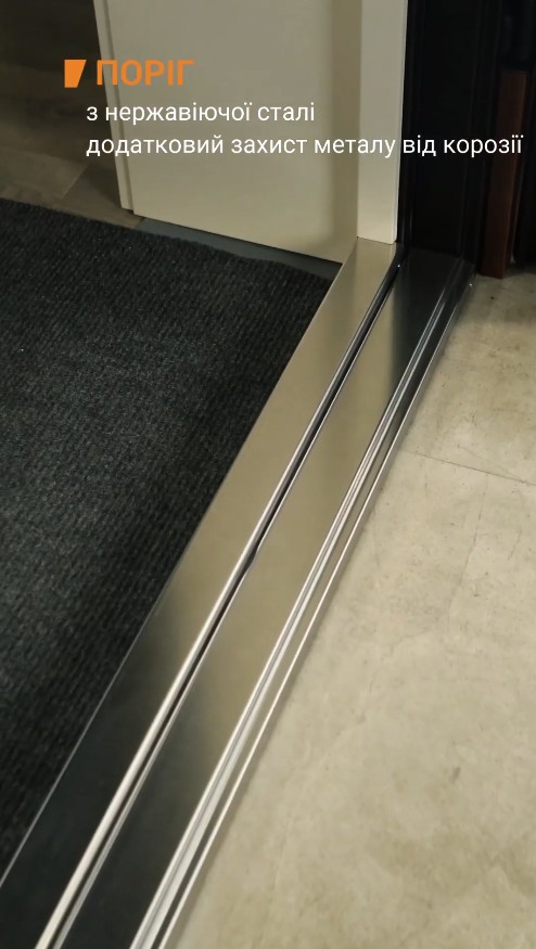 Порог: Выполнен из высококачественной нержавеющей стали — он не боится коррозии и легко чистится.