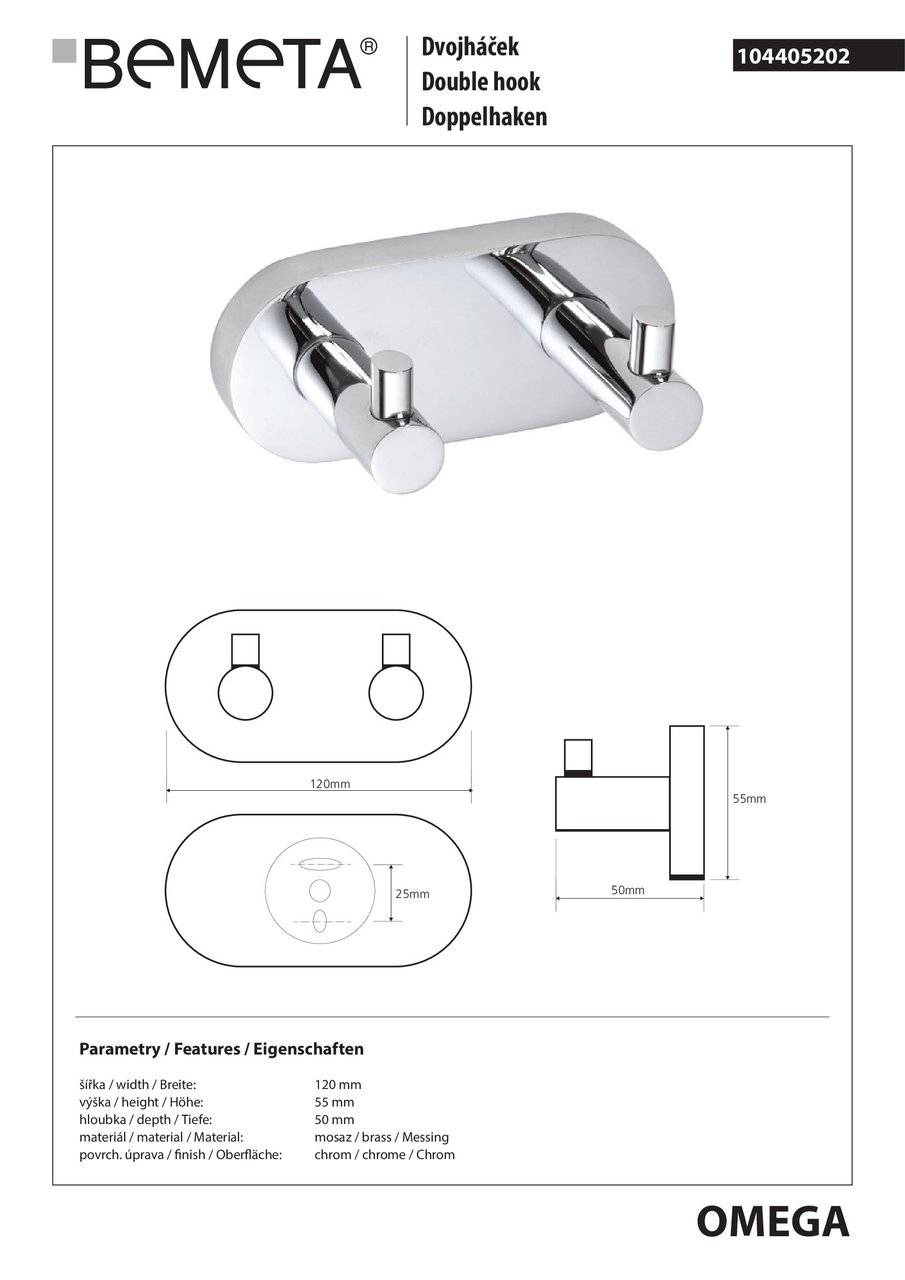 Планка з гачками Omega (104405202), Bemeta