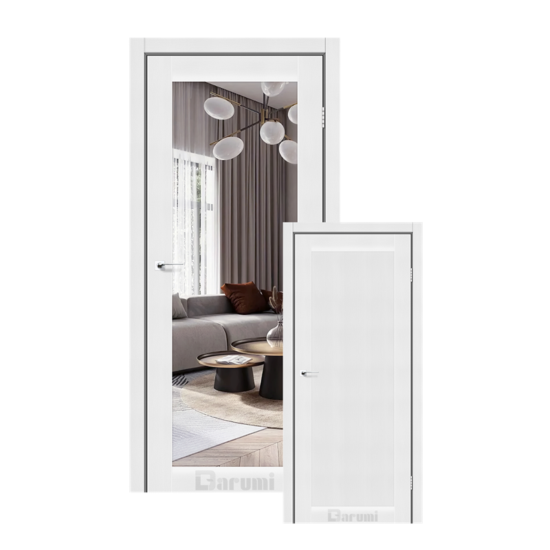 Двери межкомнатные Darumi VIOLETA Белая текстурированная Глухое зеркало — это сочетание 19-летнего опыта и японских технологий ELBEGY. Благодаря защитному акриловому слою и бесшовной кромке, полотна неуязвимы для влаги, царапин и бытовой химии, оставаясь полностью безопасными для детей и пищевых производств.