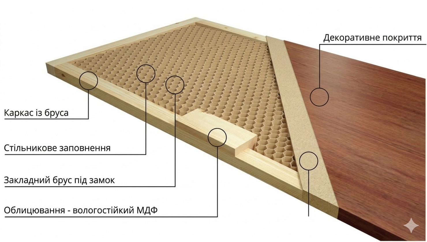 | Материал дверного полотна | евробрус сосны + сотовый наполнитель |